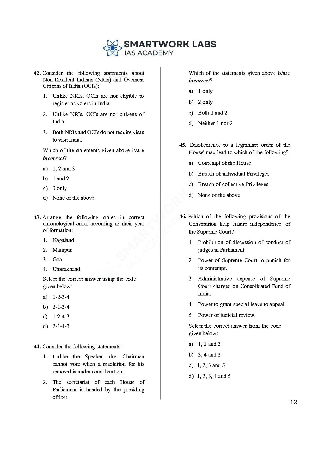 / SMARTWORKS LABS IAS ACADEMY 2023 GS TEST-6 INDIAN POLITY L-1 (BLACK AND WHITE)