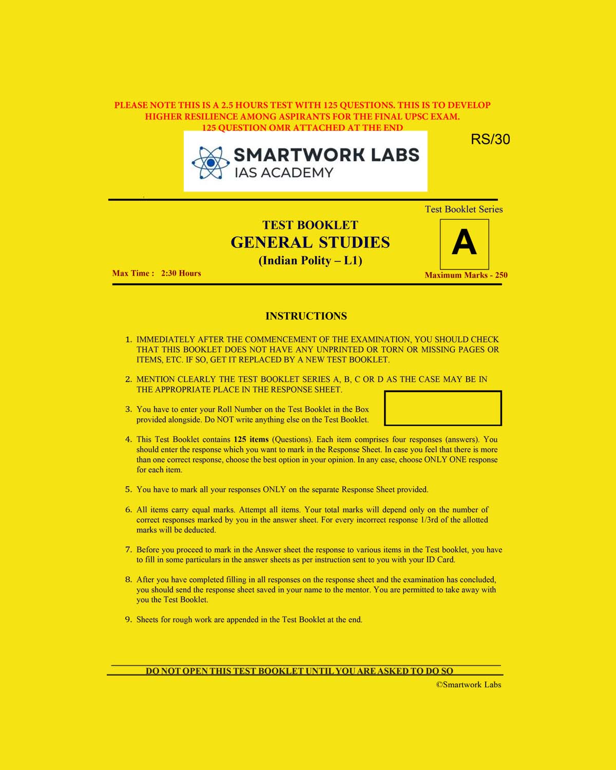 SMARTWORKS LABS IAS ACADEMY 2023 GS TEST-6 INDIAN POLITY L-1 (BLACK AND WHITE) quantity