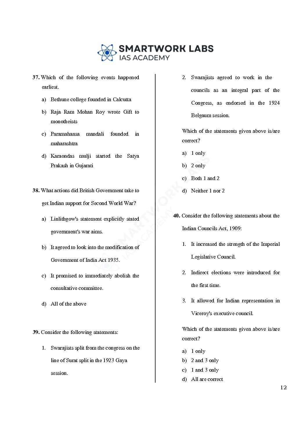 SMARTWORKS LABS IAS ACADEMY 2023 GS TEST- 8 HISTORY PART- 2 MIH -L 1- (BLACK AND WHITE)