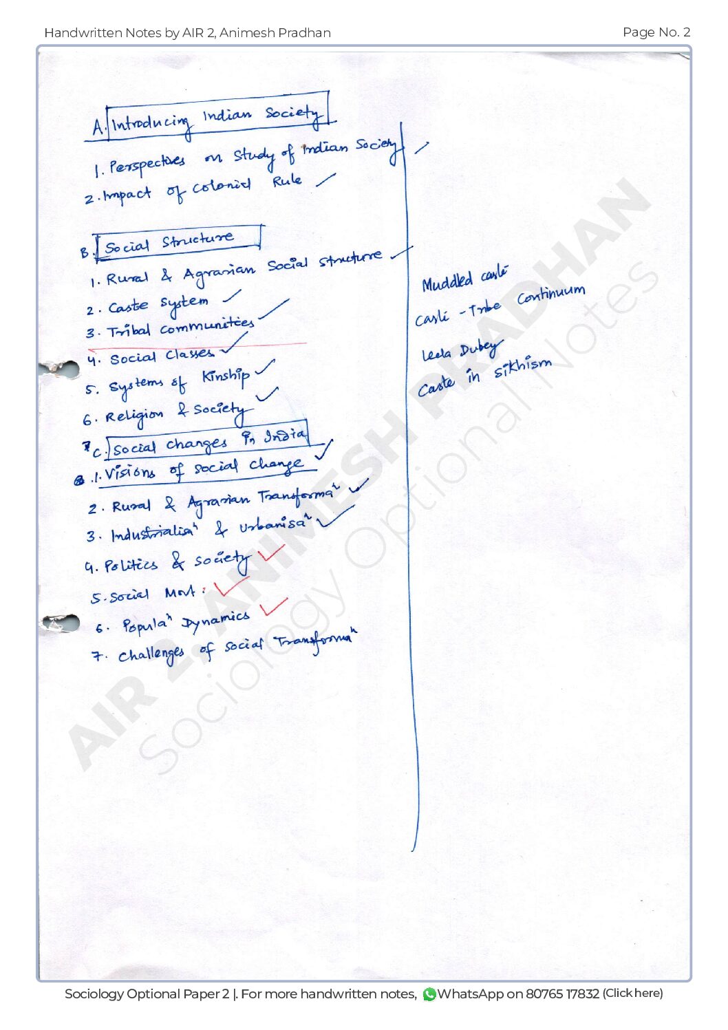 / SOCIOLOGY TOPPER NOTES ANIMESH PRADHAN AIR-2 SOCIOLOGY PAPER-22023 FINAL (ENGLISH) {BLACK AND WHITE}