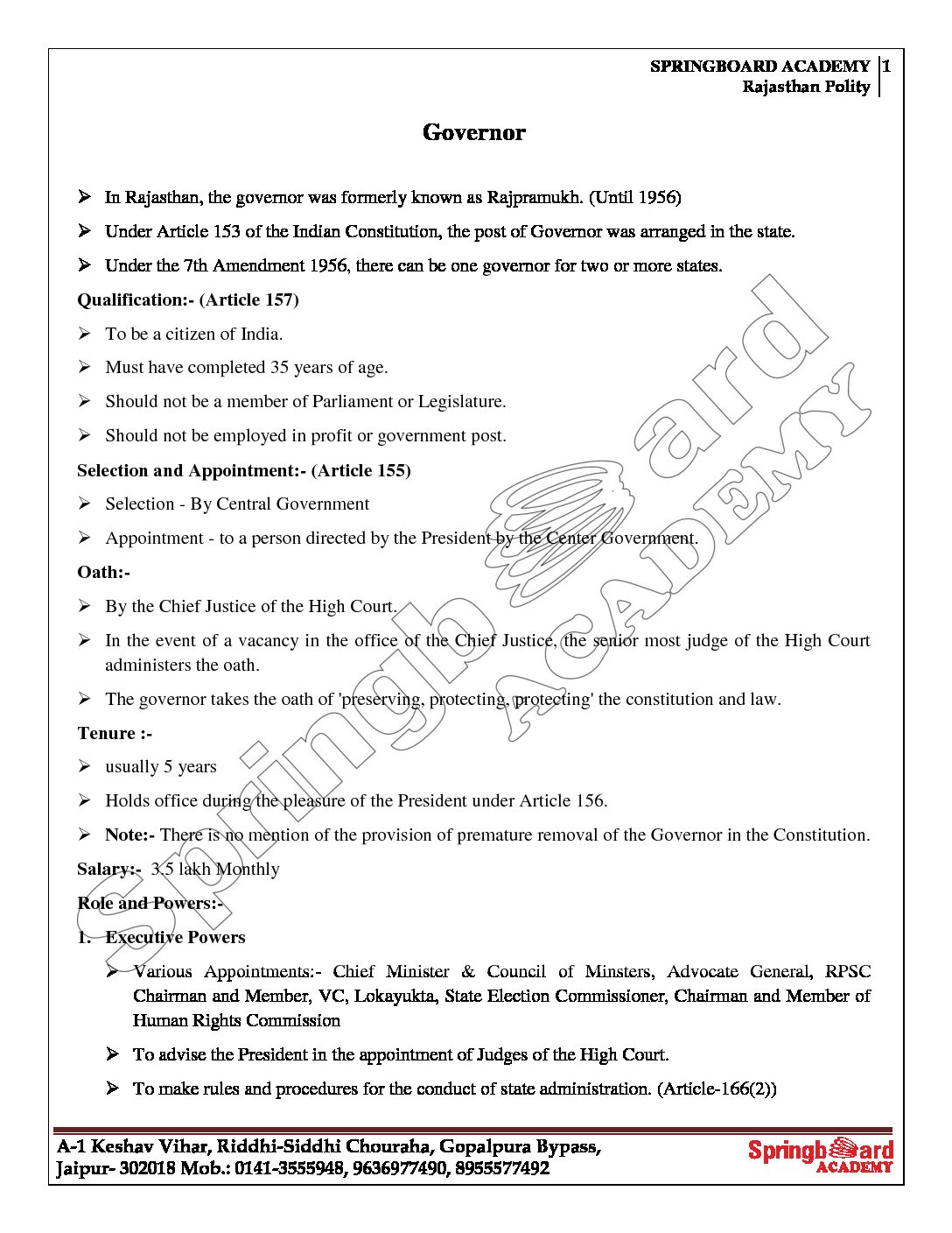 / SPRING BOARD POLITY PRE+MAINS PRINTED NOTES 2022 ENGLISH MEDIUM (BLACK & WHITE)
