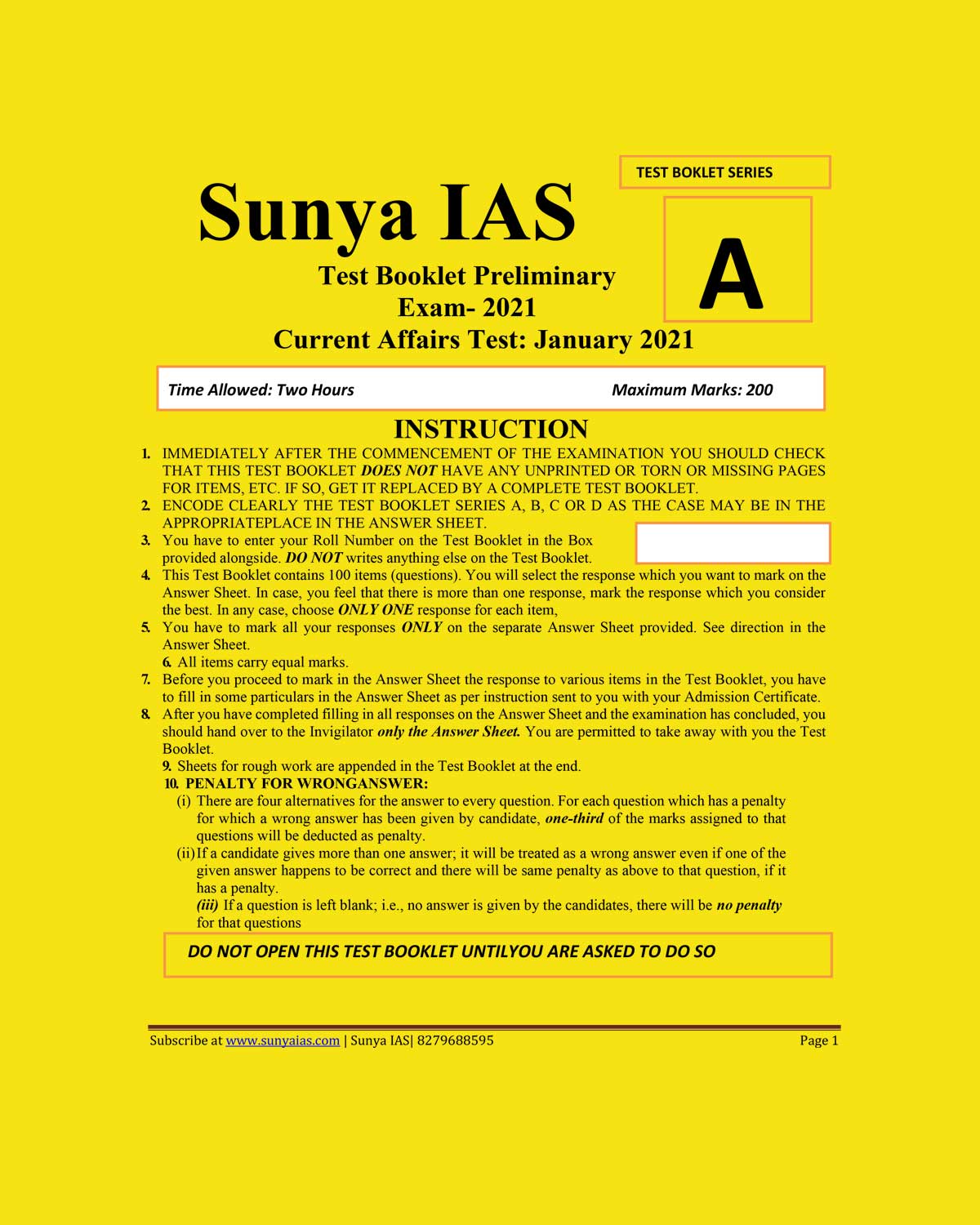 / SUNYA IAS 2022 CURRENT AFFAIRS 2022 TEST-1 (JANUARY-2021) (BLACK & WHITE)