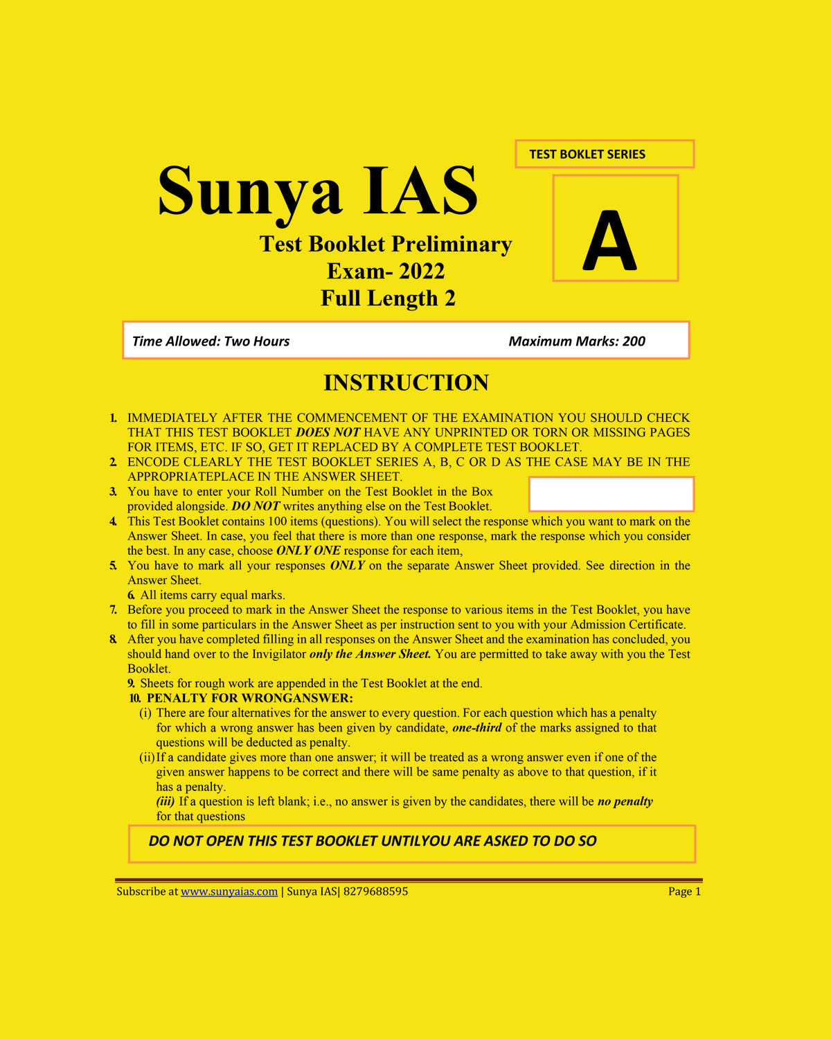 SUNYA IAS 2022 TEST-2 FULL LENGTH (BLACK & WHITE)