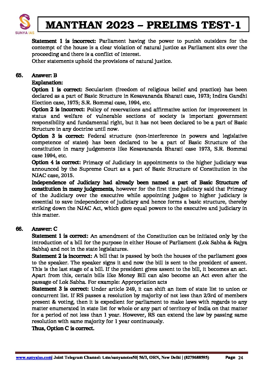 / SUNYA IAS 2023 MANTHAN PT SERIES TEST-1 ECONOMY &POLITY (NCERT REVISION TEST) (BLACK & WHITE)