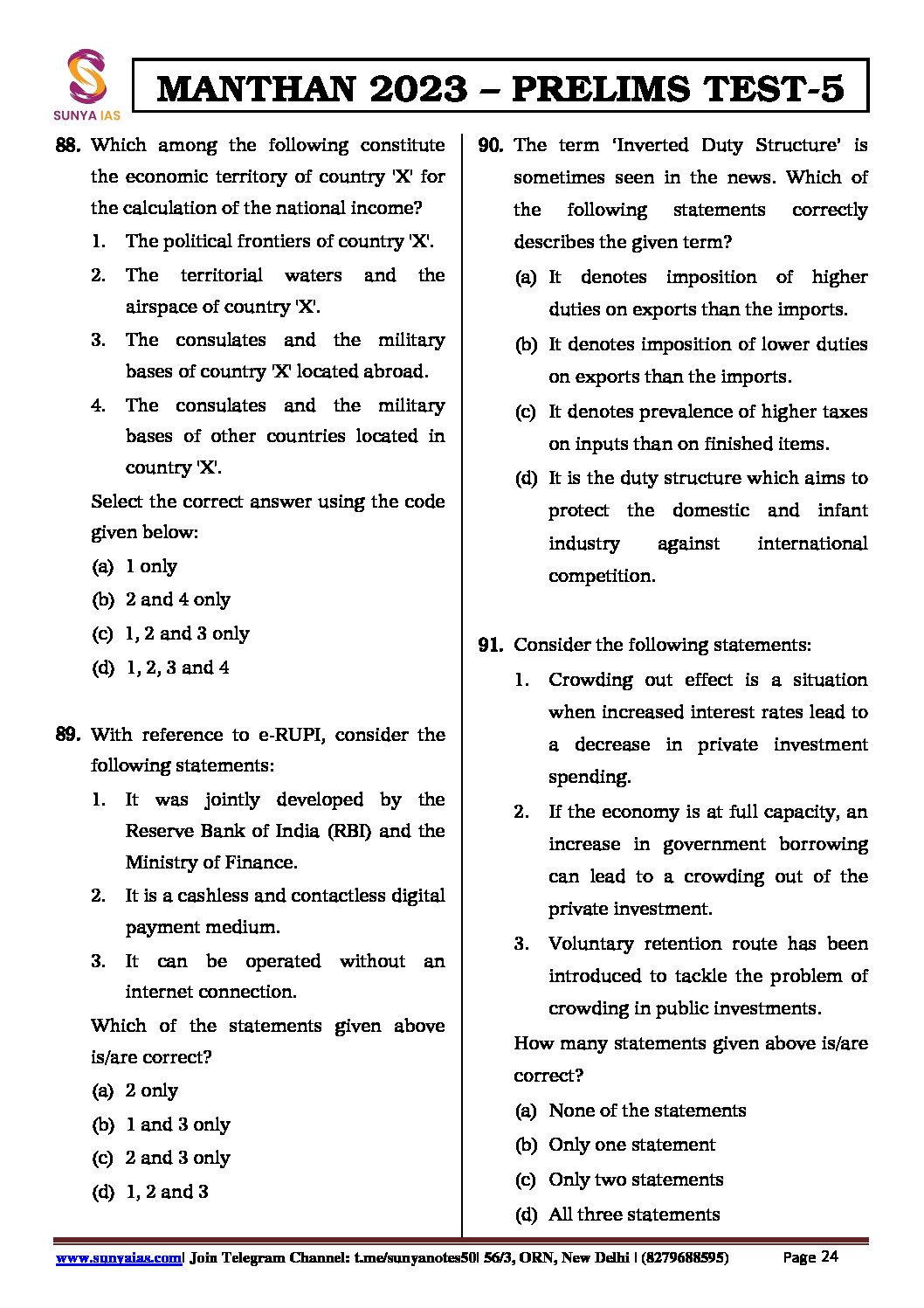 SUNYA IAS 2023 MANTHAN PT SERIES TEST-5-ECONOMICS-1 (ADVANCED LEVEL) (BLACK & WHITE)