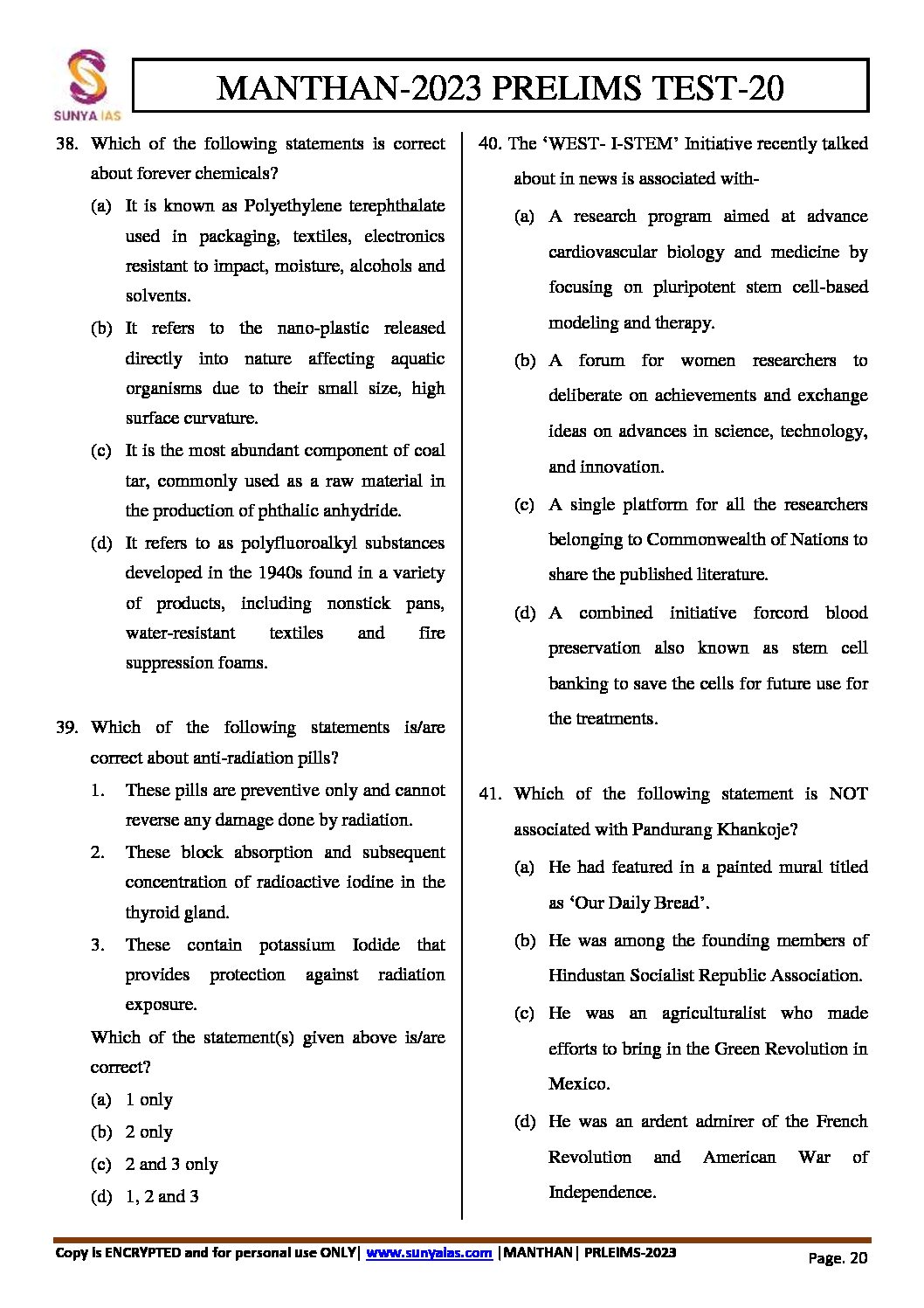 / SUNYA IAS 2023 MANTHAN TEST-20 PRELIMS TEST SERIES CURRENT AFFAIRS (BLACK & WHITE)