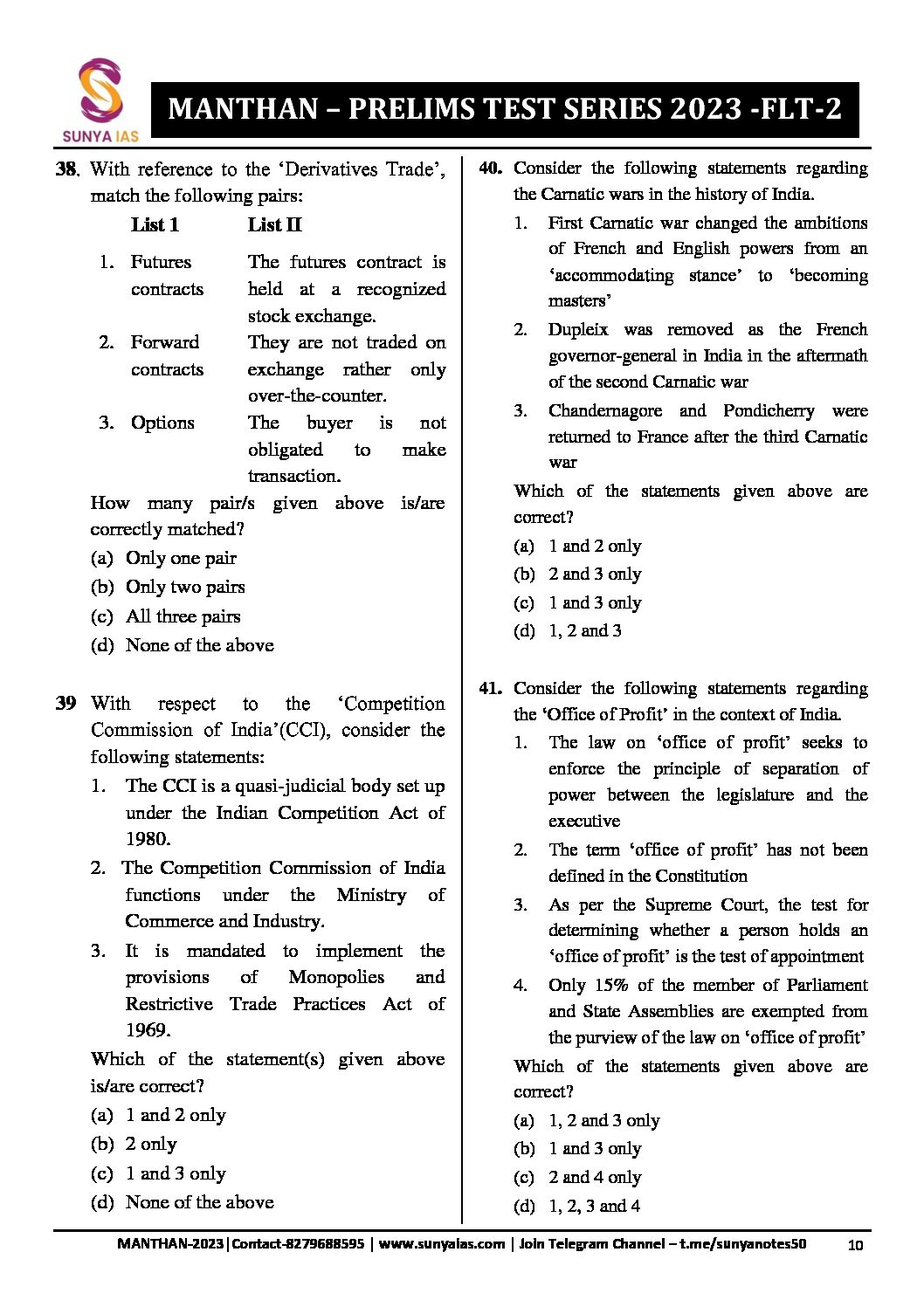 SUNYA IAS 2023 MANTHAN TEST-29 PRELIMS TEST SERIES FULL LENGTH TEST –2 (BLACK & WHITE)
