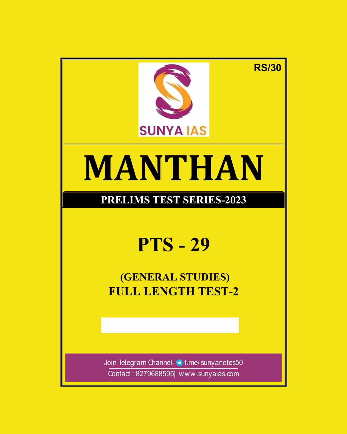 SUNYA IAS 2023 MANTHAN TEST-29 PRELIMS TEST SERIES FULL LENGTH TEST –2 (BLACK & WHITE) quantity