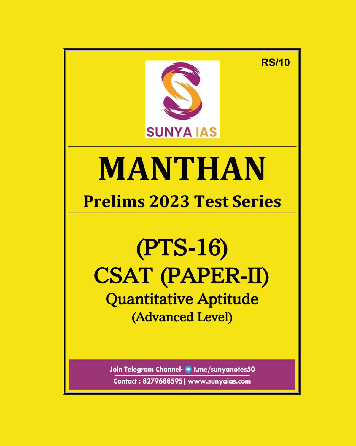 SUNYA IAS 2023 PRELIMS TEST-16 MANTHAN PRELIMS 2023 TEST SERIES CSAT (PAPER-II) QUANTITATIVE APTITUDE (BASIC LEVEL) (BLACK & WHITE)