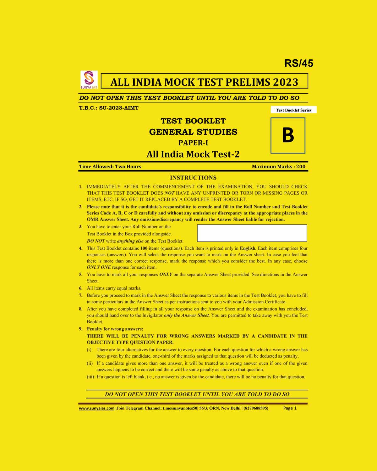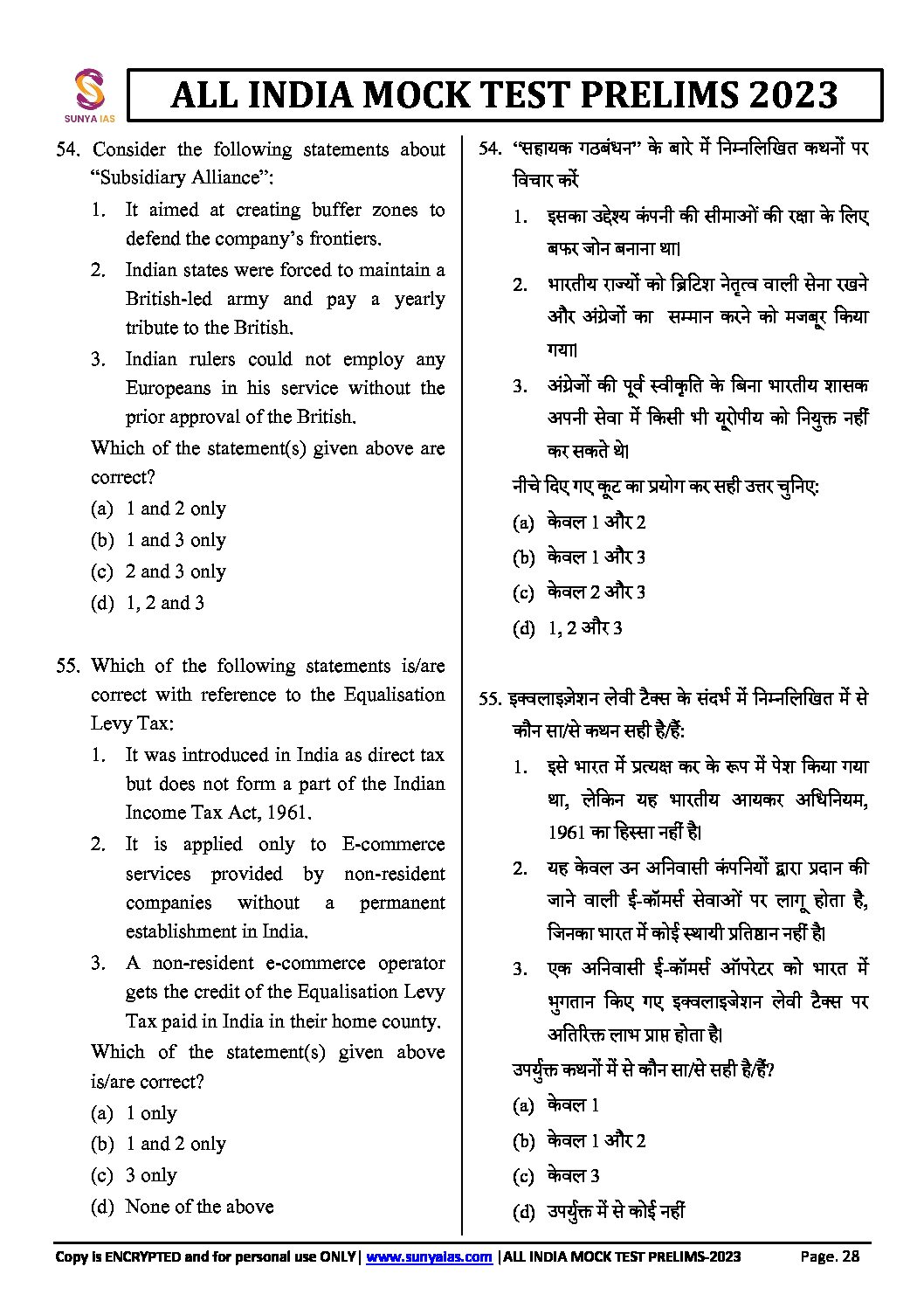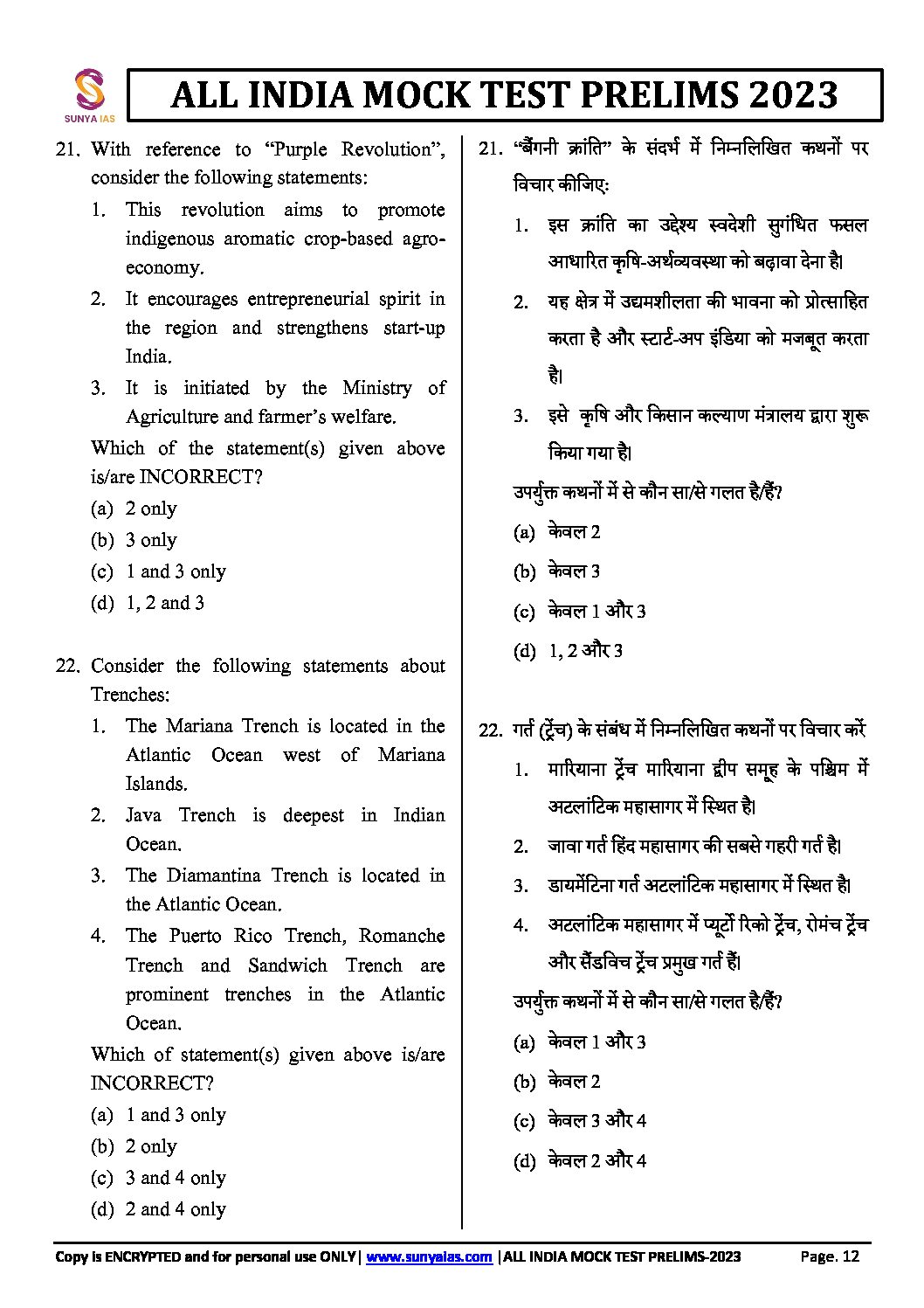 SUNYA IAS 2023 ALL INDIA MOCK TEST-2 (BLACK & WHITE)