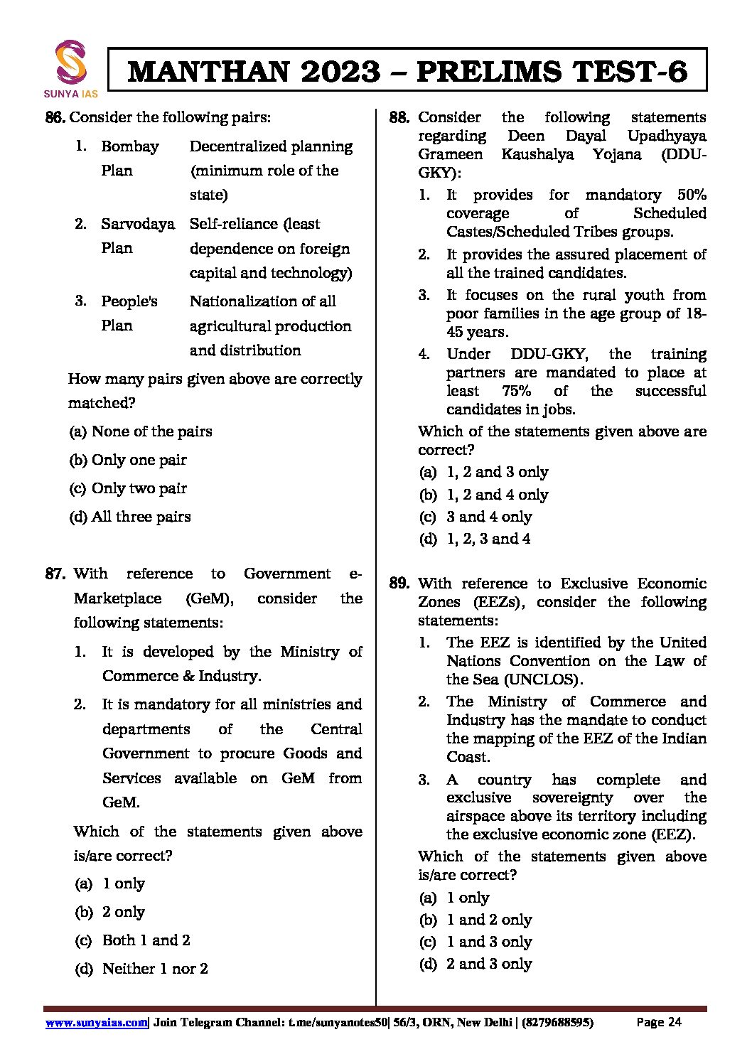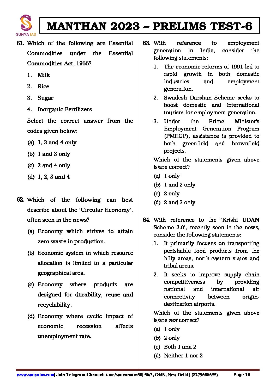 SUNYA IAS 2023 TEST-6 MANTHAN PRELIMS 2023 TEST SERIES ECONOMICS–II (ADVANCED LEVEL ) (BLACK & WHITE)