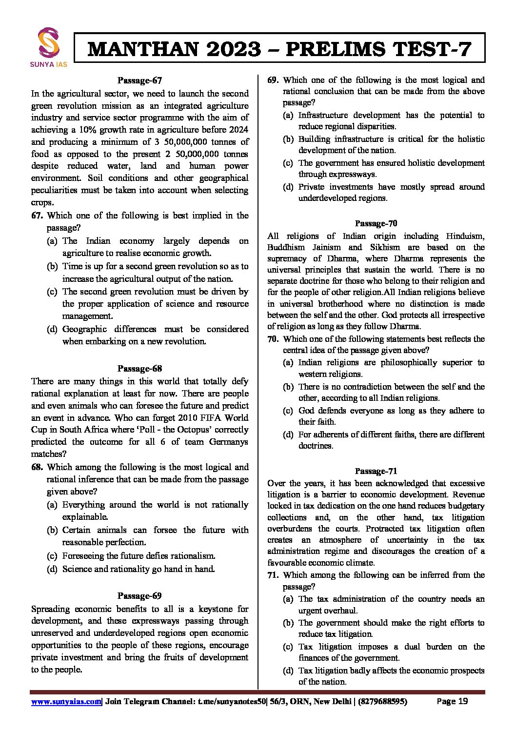 / SUNYA IAS 2023 TEST-7 MANTHAN PRELIMS 2023 TEST SERIES SET-A CSAT READING COMPREHENSION (BLACK & WHITE)
