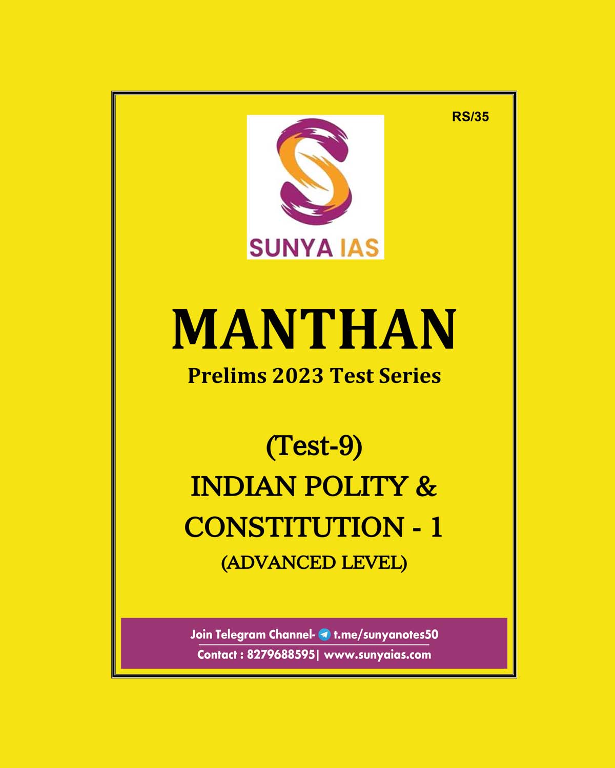 SUNYA IAS 2023 TEST-9 MANTHAN PRELIMS 2023 TEST SERIES INDIAN POLITY & CONSTITUTION-1 (ADVANCED LEVEL) (BLACK & WHITE)