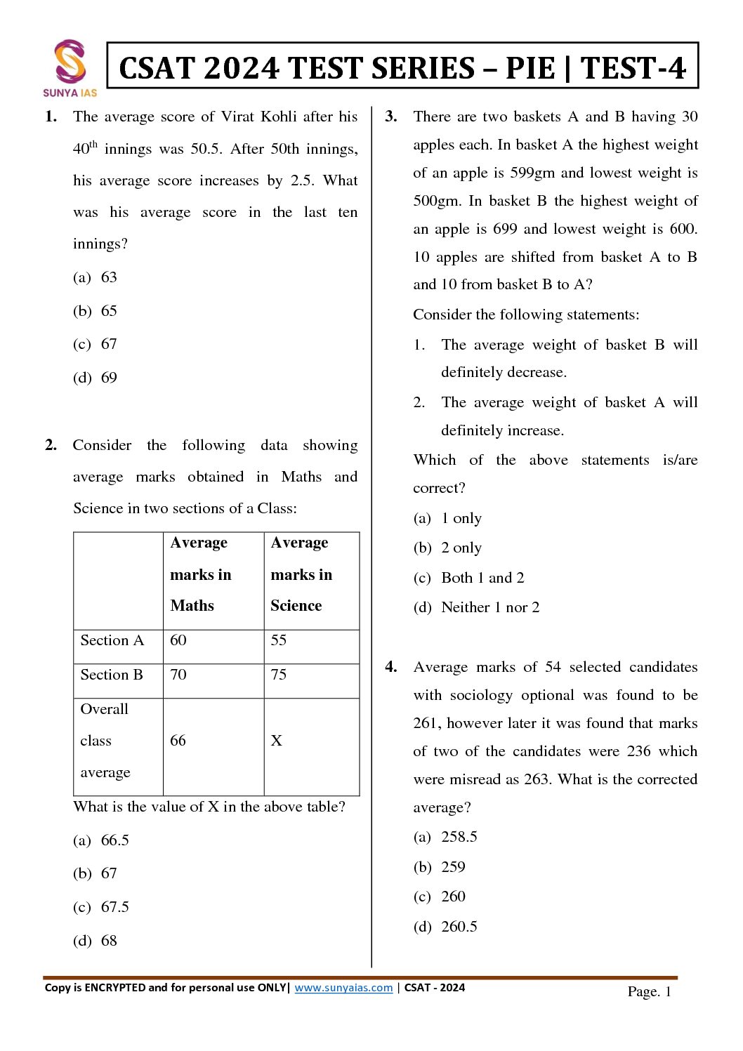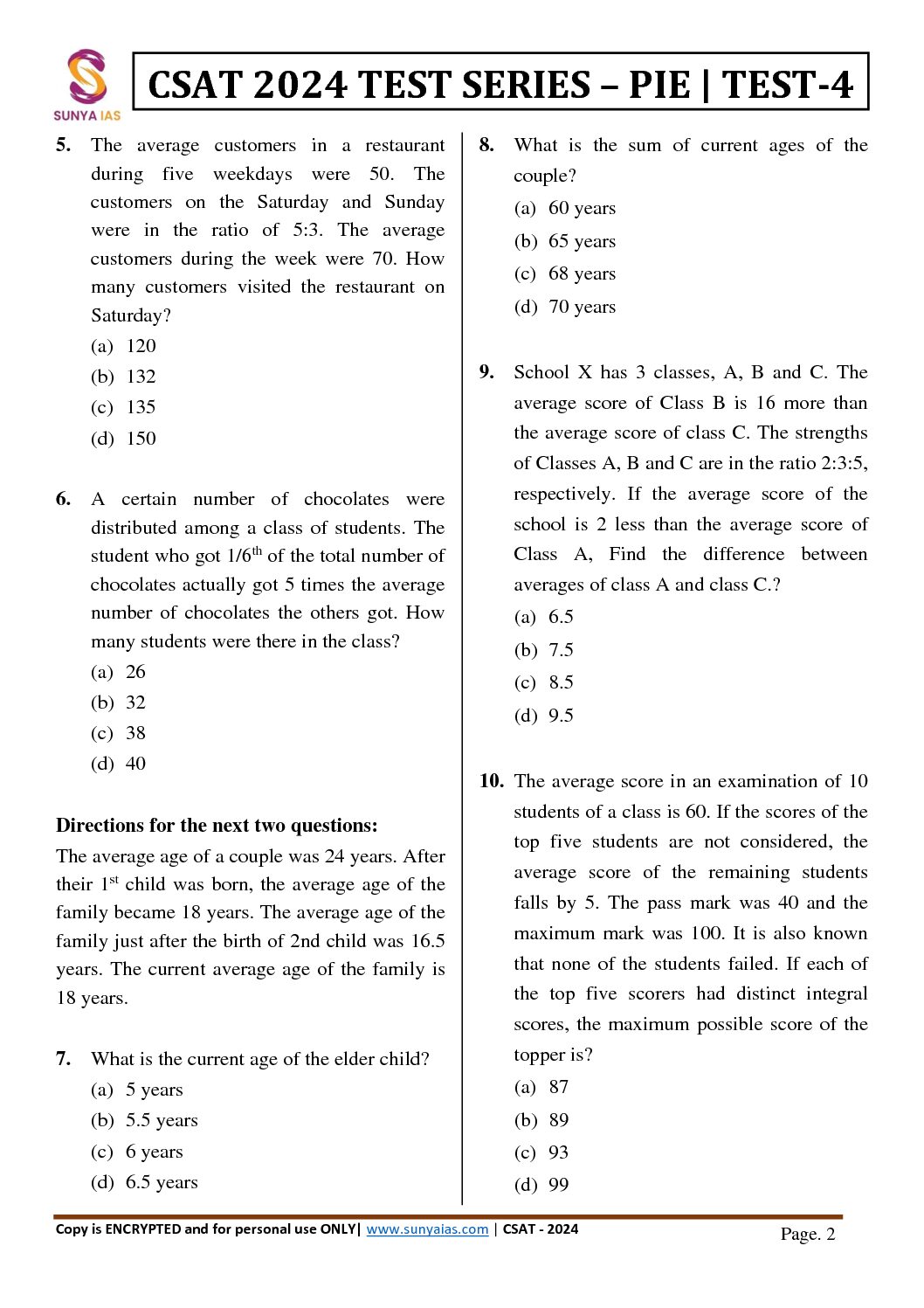 / SUNYA IAS 2024 CSAT TEST SERIES PIE PART LENGHT TEST-4 2024 FINAL {ENGLISH} {BLACK AND WHITE}