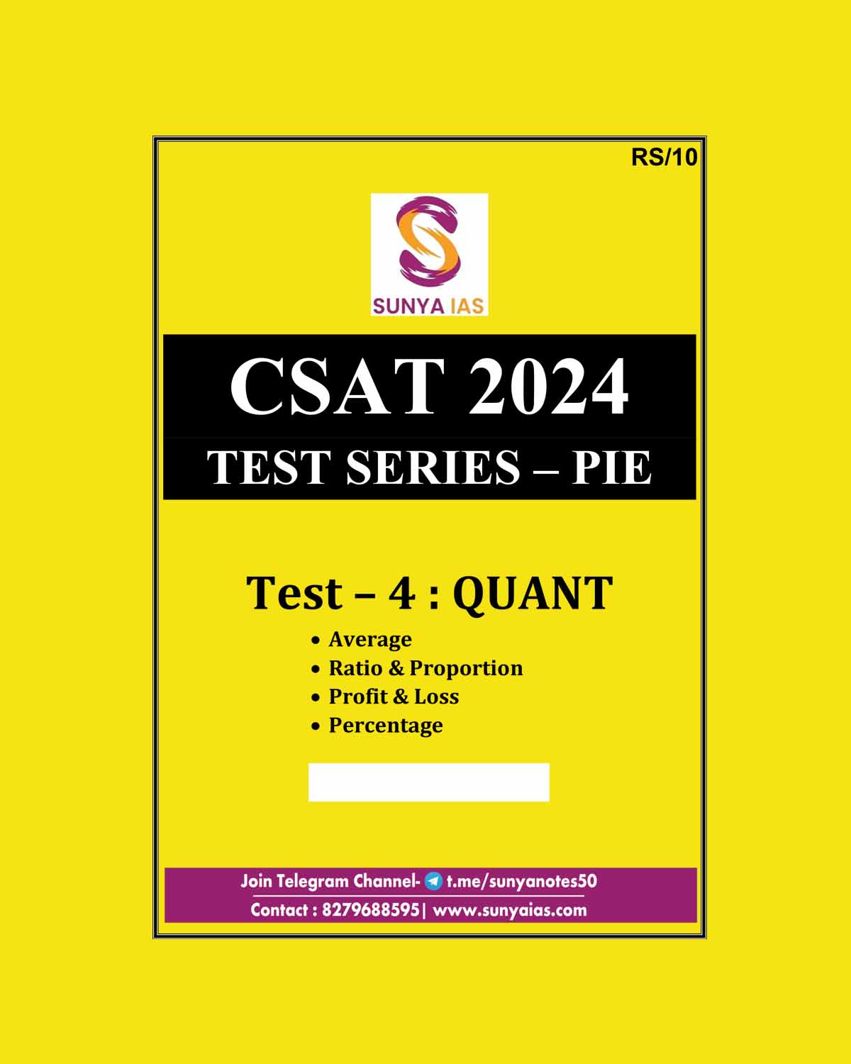 SUNYA IAS 2024 CSAT TEST SERIES PIE PART LENGHT TEST-4 2024 FINAL {ENGLISH} {BLACK AND WHITE} quantity