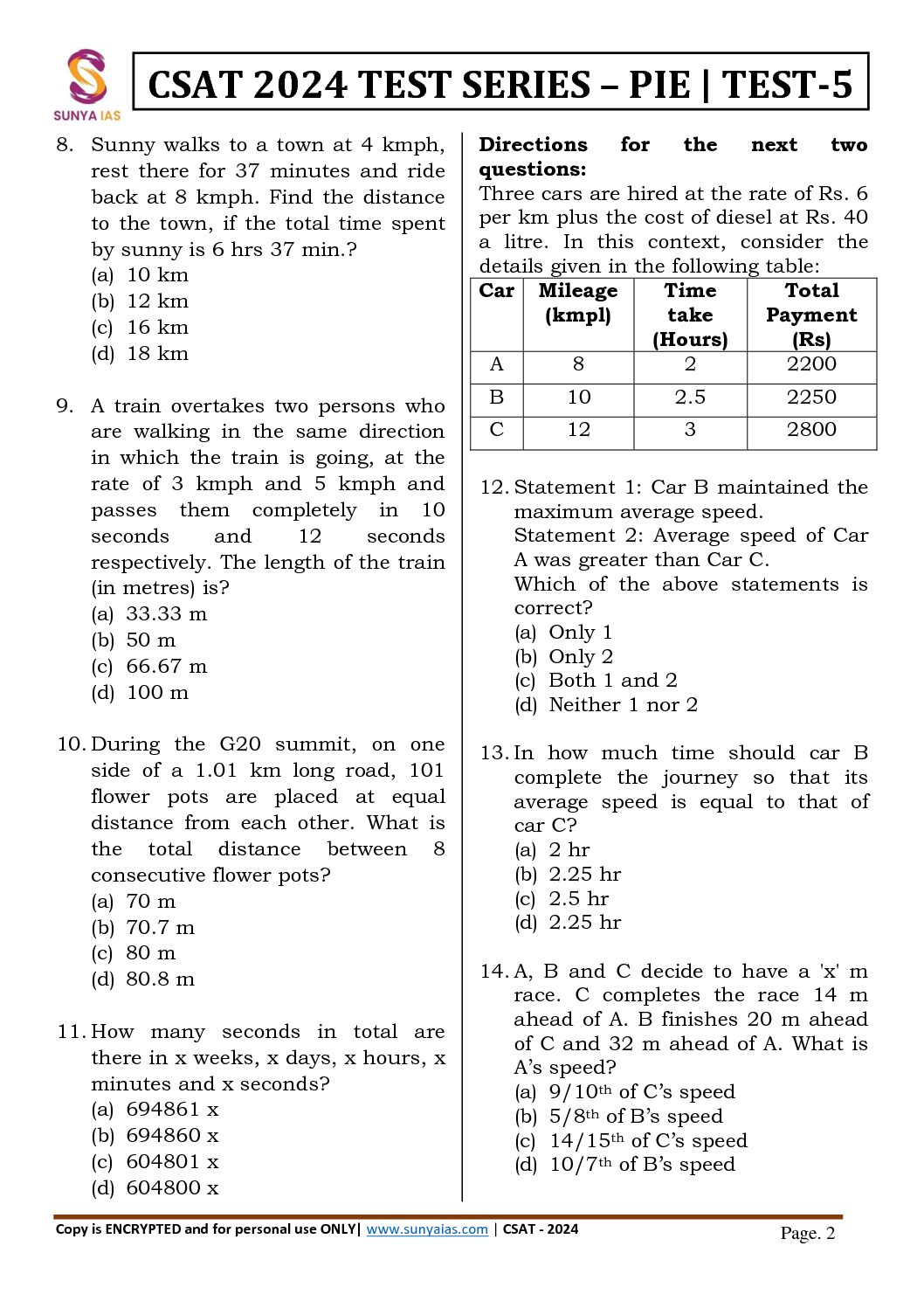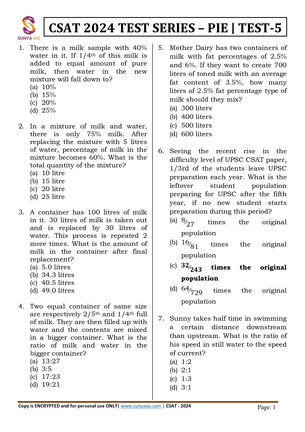 / SUNYA IAS 2024 CSAT TEST SERIES PIE PART LENGHT TEST-5 2024 FINAL {ENGLISH} {BLACK AND WHITE}