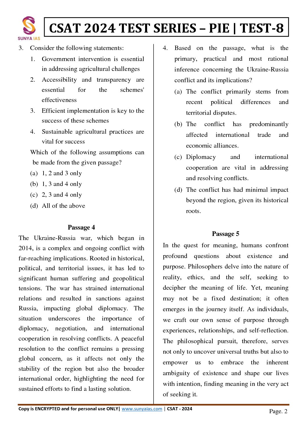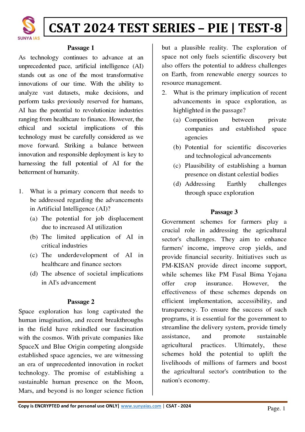 / SUNYA IAS 2024 CSAT TEST SERIES PIE PART LENGHT TEST-8 2024 FINAL {ENGLISH} {BLACK AND WHITE}