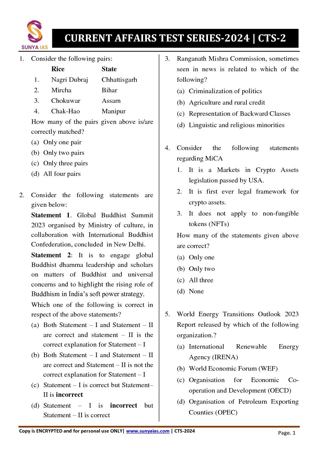 / SUNYA IAS 2024 CURRENT AFFIARS TEST-2 {MARCH 2023 TO APRIL 2023} FINAL 2024 ENGLISH {BLACK AND WHITE}