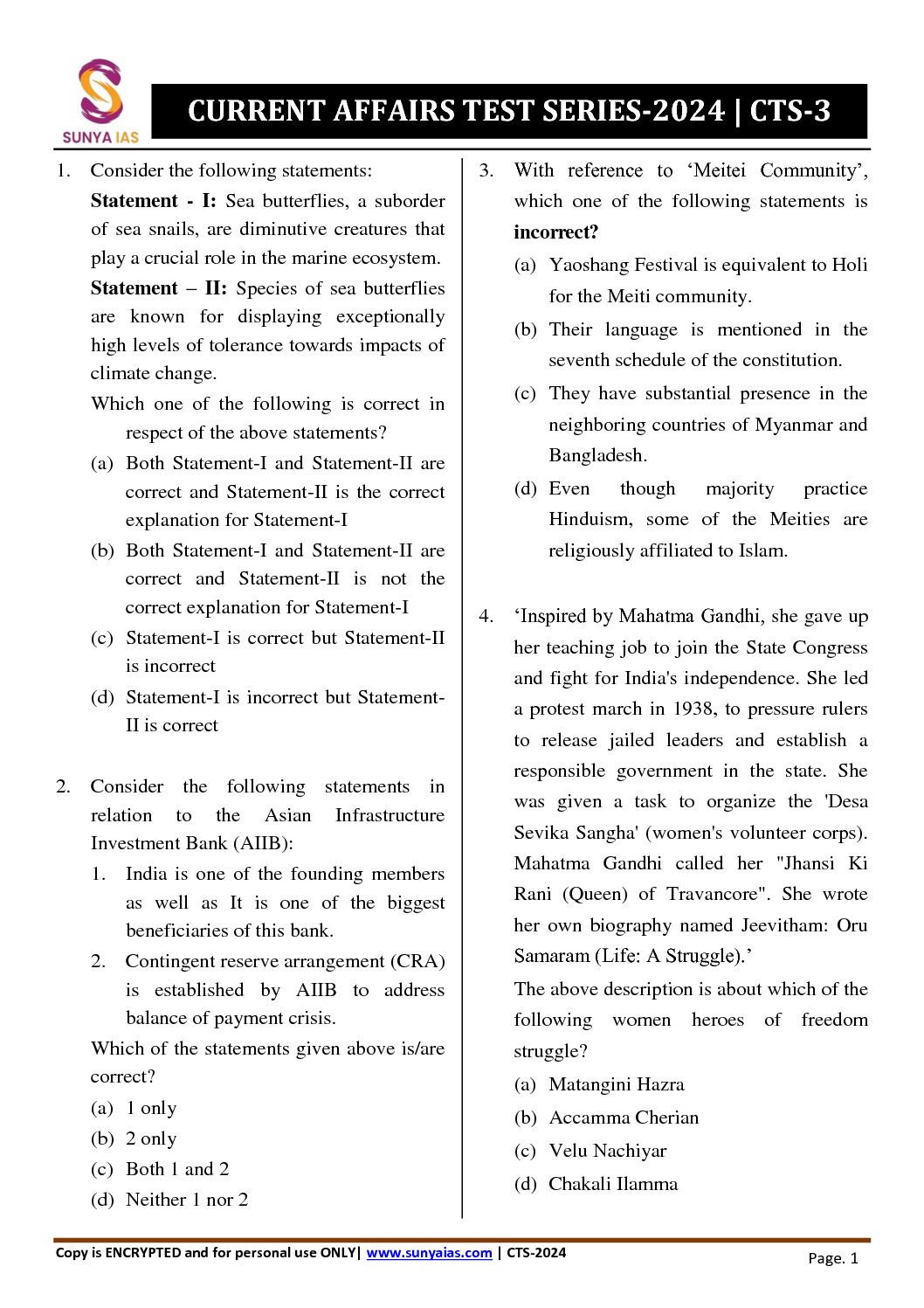 / SUNYA IAS 2024 CURRENT AFFIARS TEST-3 {MAY 2023 TO JUNE 2023} FINAL 2024 ENGLISH {BLACK AND WHITE}