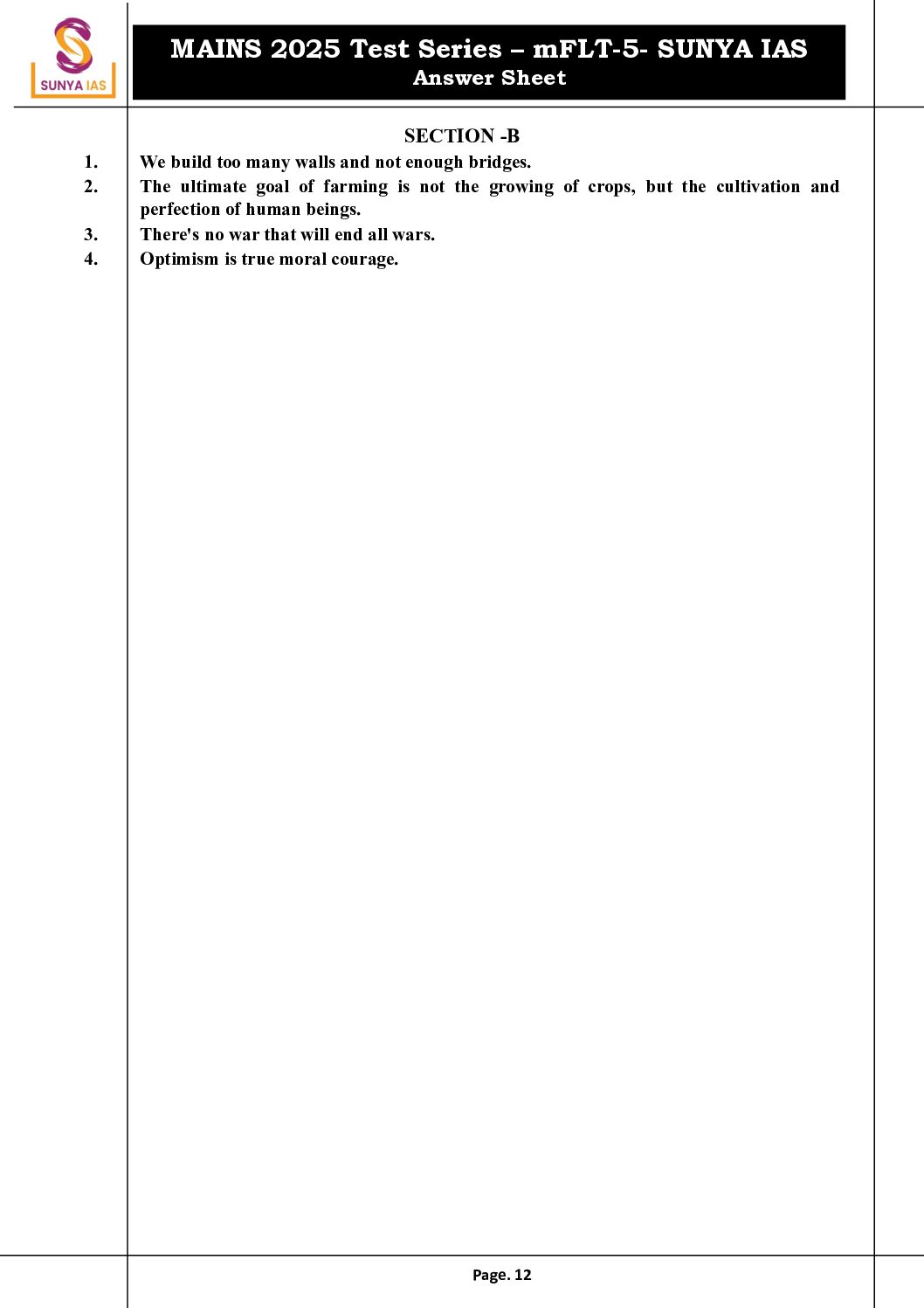 SUNYA IAS 2025 ESSAY FULL TEST-5 2025 FINAL (ANSWERS BOOKLET) (ENGLISH) {BLACK AND WHITE}