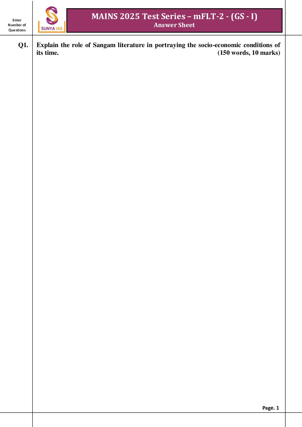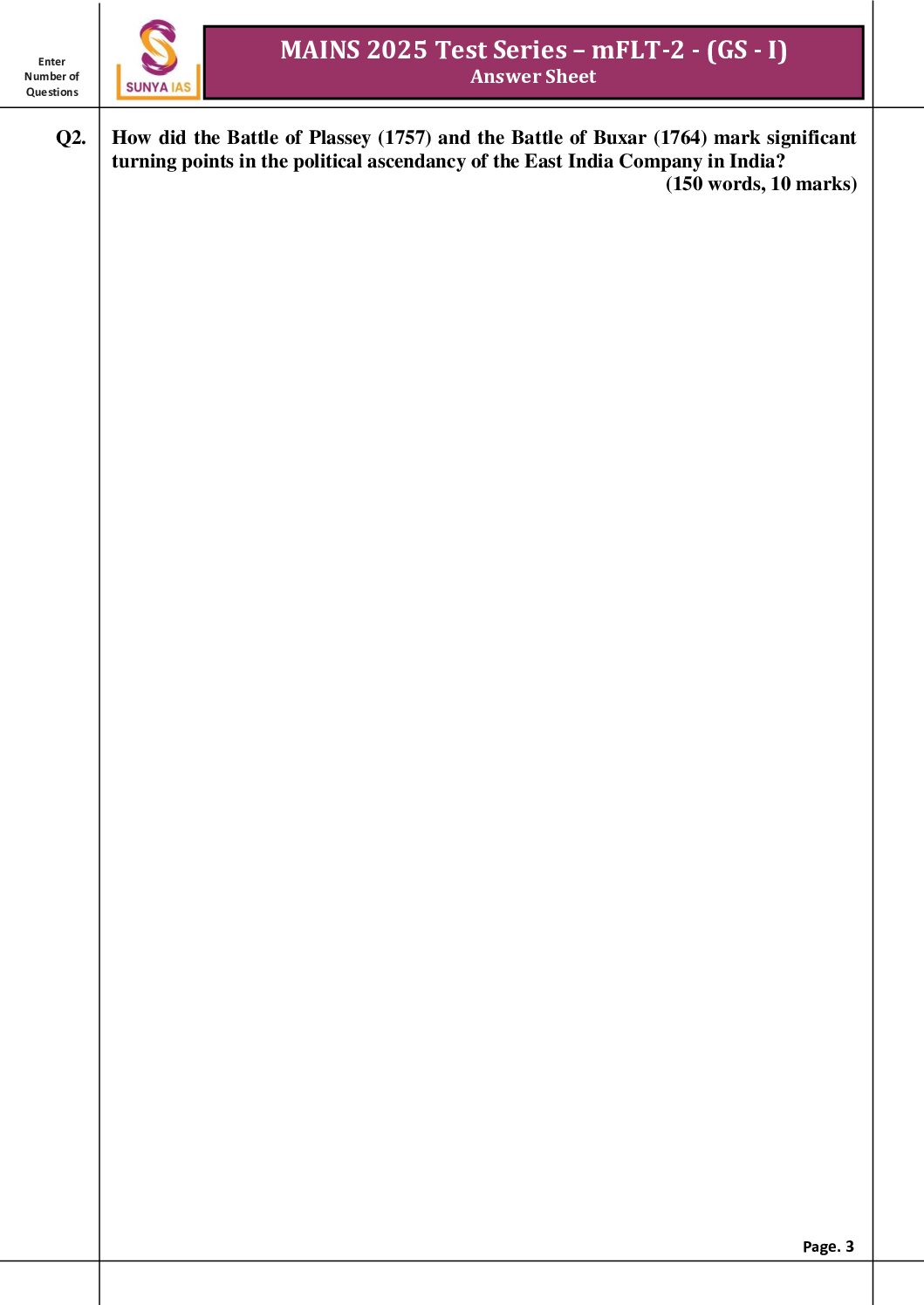 SUNYA IAS 2025 GS-1 FULL TEST-2 2025 FINAL (ANSWERS BOOKLET) (ENGLISH) {BLACK AND WHITE}