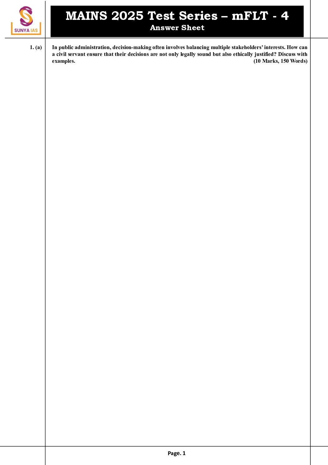 / SUNYA IAS 2025 GS-4 FULL TEST-4 2025 FINAL (ANSWERS BOOKLET) (ENGLISH) {BLACK AND WHITE}