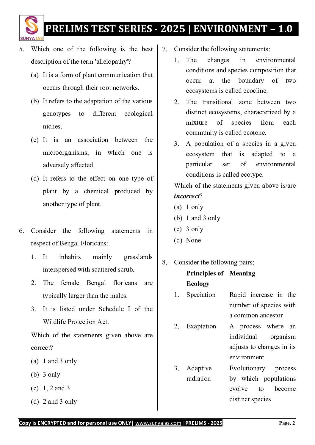 SUNYA IAS 2025 PPLT TEST-10 (ENVIRONMENT-1) 2025 FINAL (ENGLISH) {BLACK AND WHITE}