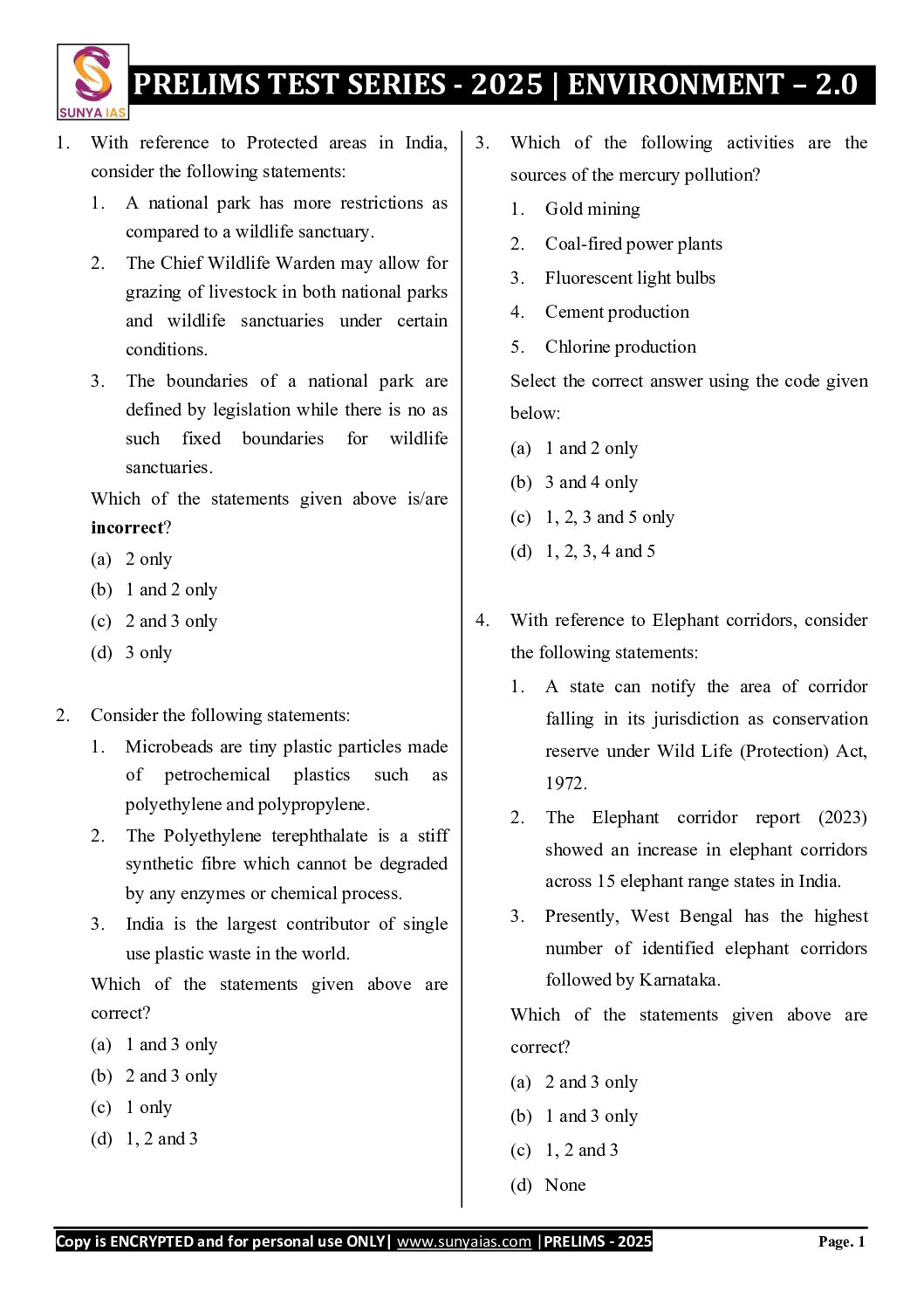 SUNYA IAS 2025 PPLT TEST-11 (ENVIRONMENT-2) 2025 FINAL (ENGLISH) {BLACK AND WHITE}
