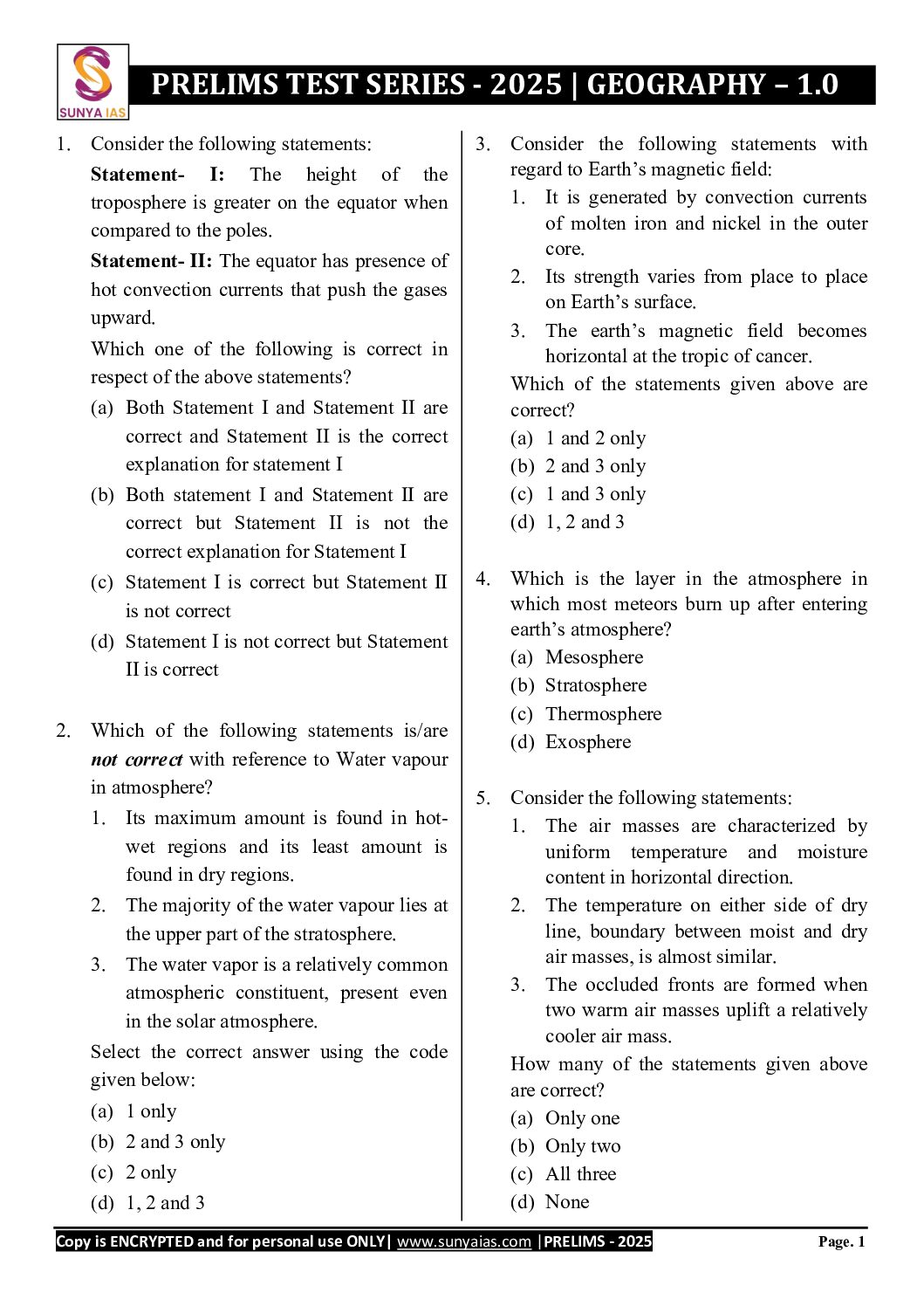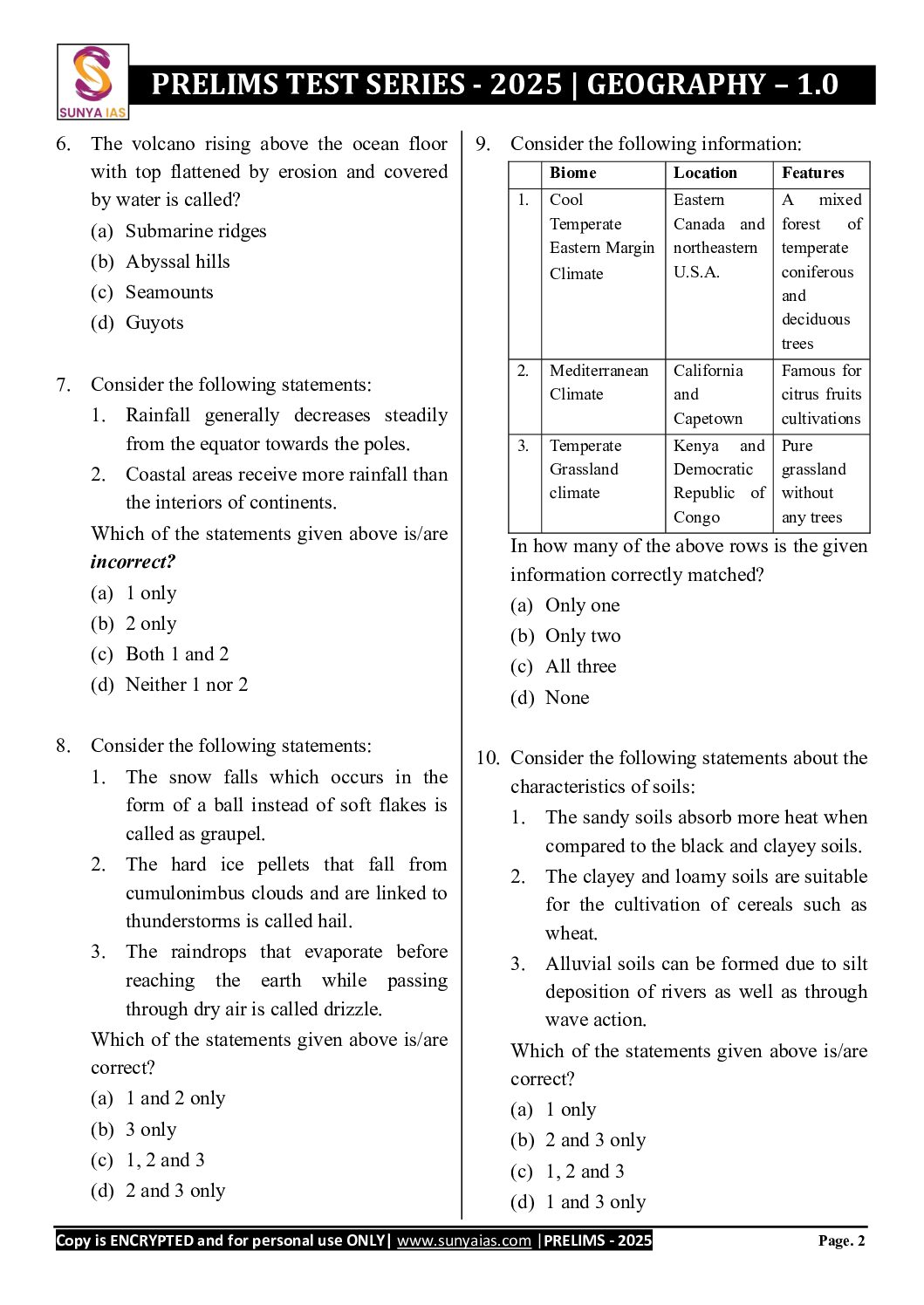/ SUNYA IAS 2025 PPLT TEST-13 (GEOGRAPHY-1) 2025 FINAL (ENGLISH) {BLACK AND WHITE}