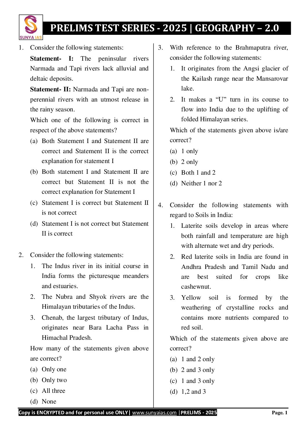 / SUNYA IAS 2025 PPLT TEST-14 (GEOGRAPHY-2) 2025 FINAL (ENGLISH) {BLACK AND WHITE}