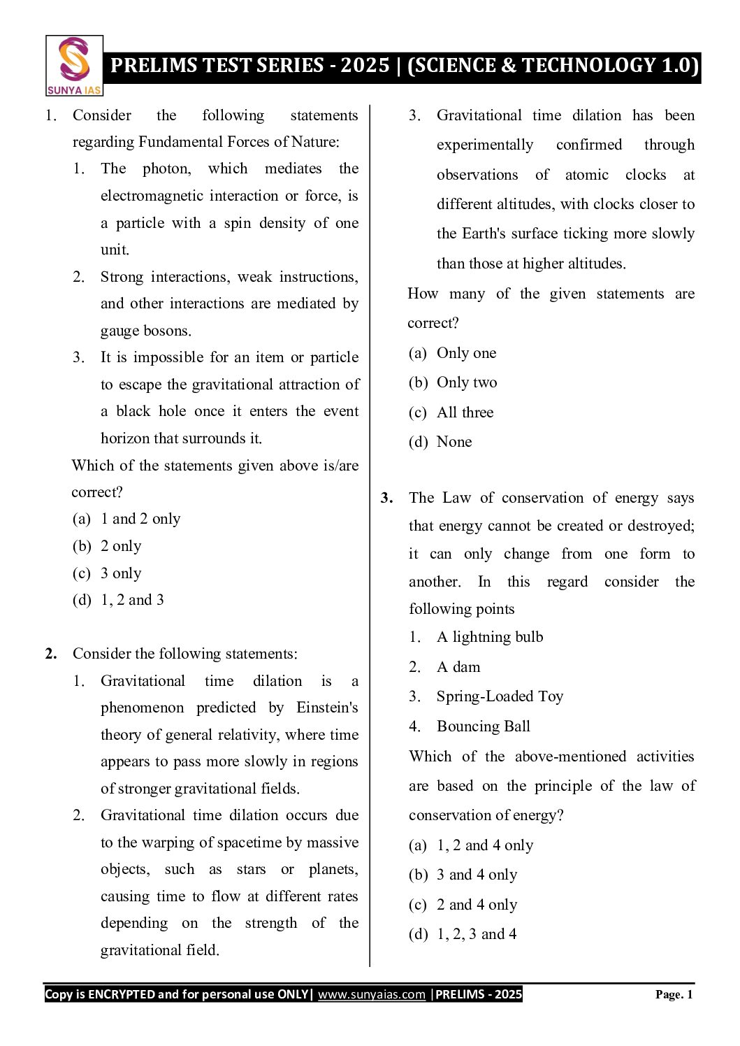 / SUNYA IAS 2025 PPLT TEST-21 (SCIENCE & TECHNOLOGY-1) 2025 FINAL (ENGLISH) {BLACK AND WHITE}