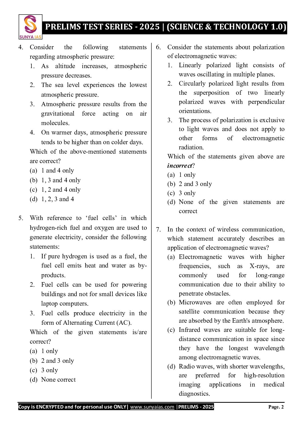 SUNYA IAS 2025 PPLT TEST-21 (SCIENCE & TECHNOLOGY-1) 2025 FINAL (ENGLISH) {BLACK AND WHITE}