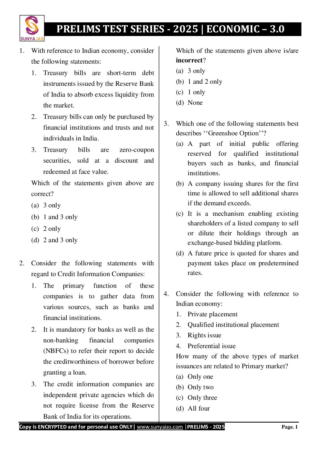 / SUNYA IAS 2025 PPLT TEST-9 (ECONOMY-3) 2025 FINAL (ENGLISH) {BLACK AND WHITE}