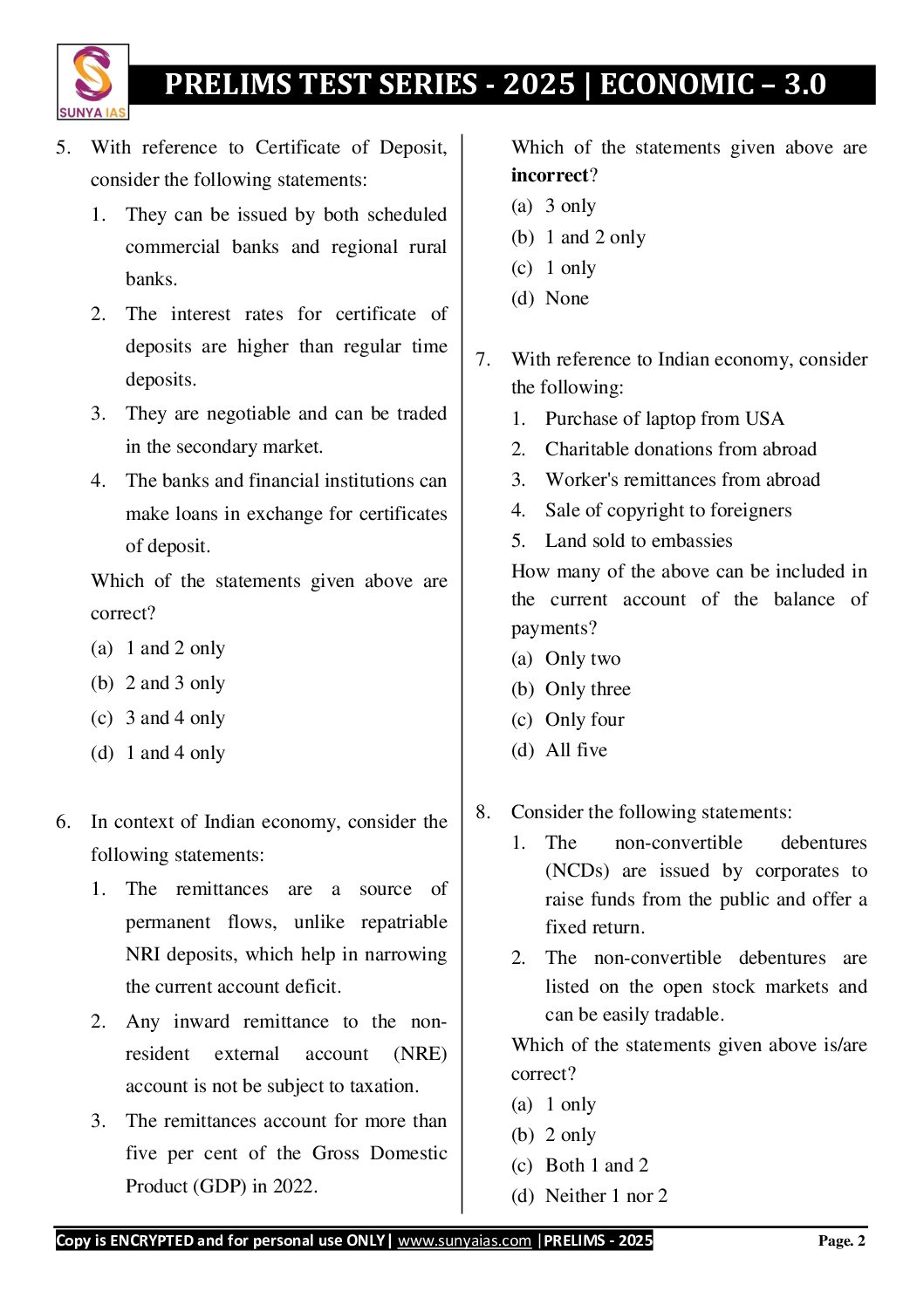 SUNYA IAS 2025 PPLT TEST-9 (ECONOMY-3) 2025 FINAL (ENGLISH) {BLACK AND WHITE}
