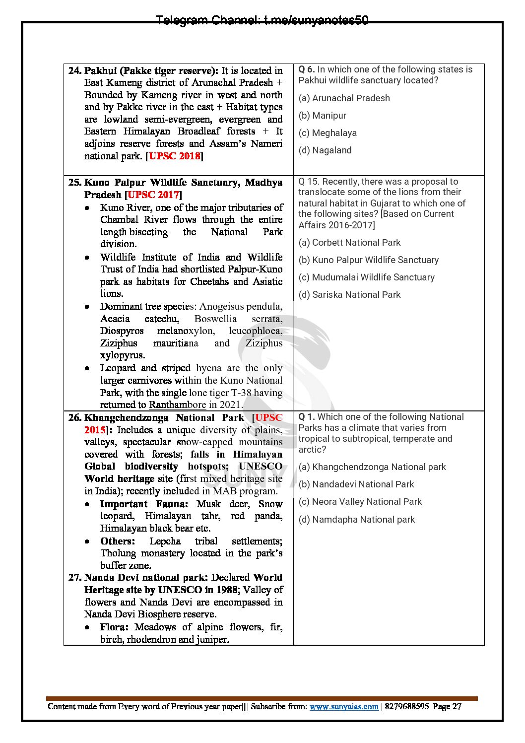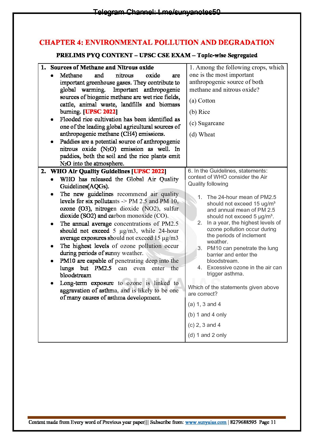 SUNYA IAS PRELIMS PYQ CONTENT SUBJECT WISE & TOPIC WISE ENVIRONMENT & ECOLOGY (BLACK & WHITE)