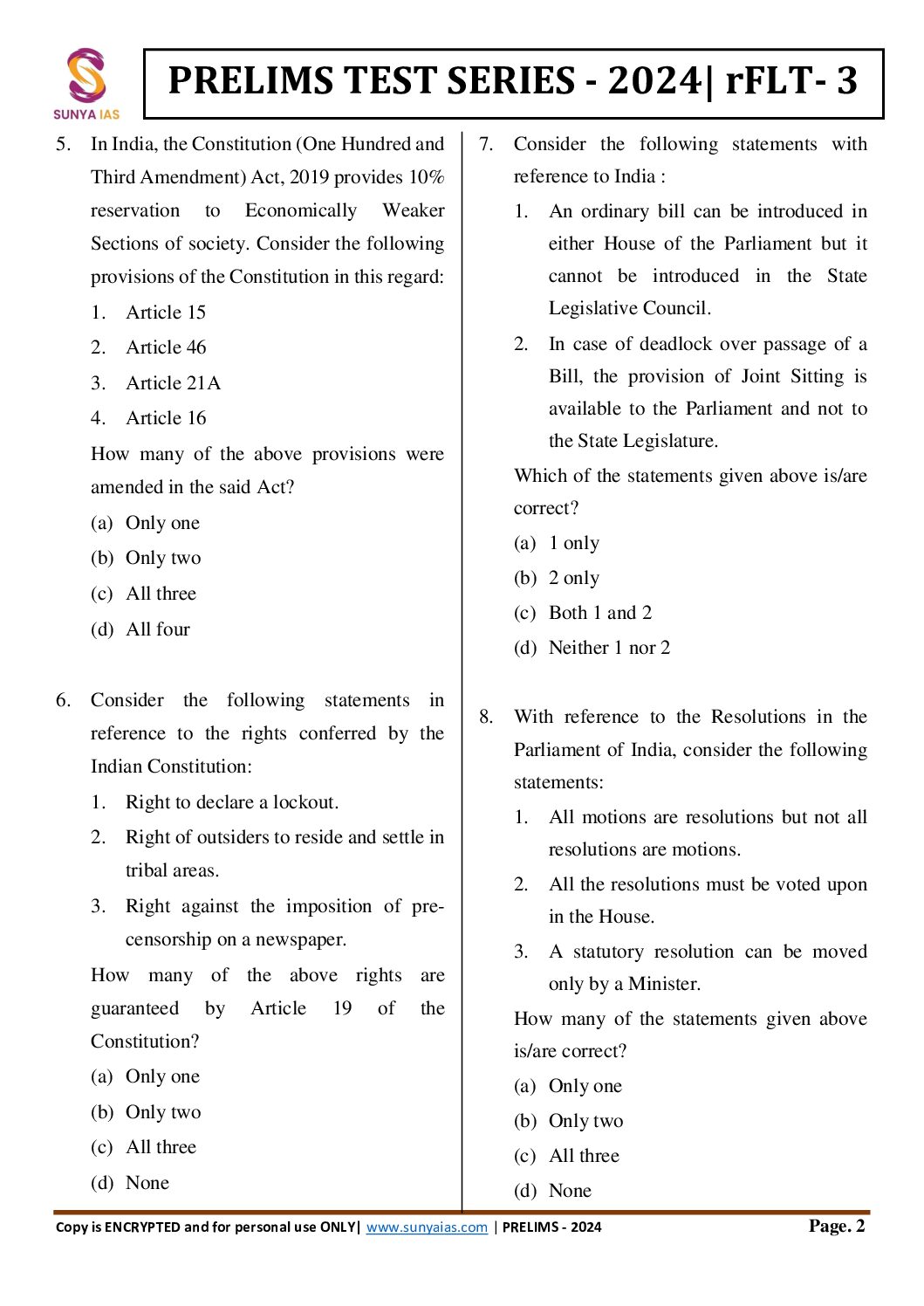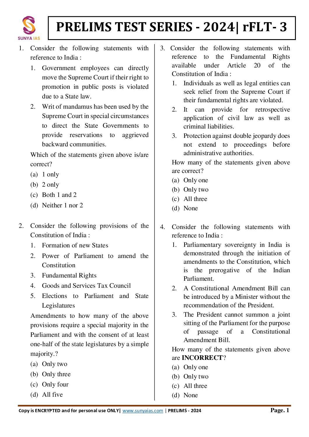 / SUNYAIAS 2024 TEST FLT-3 POLITY 2024 FINAL {ENGLISH} {BLACK AND WHITE}