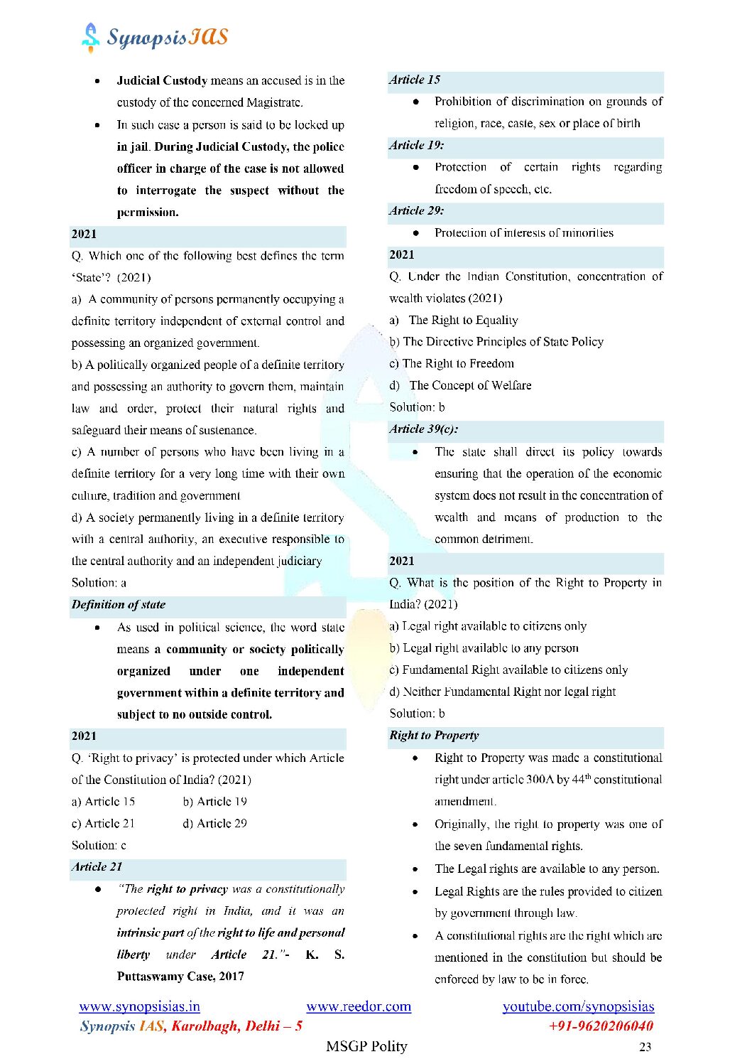 / SYNOPSIS IAS 2023 POLITY NOTES 2023 (BLACK & WHITE)