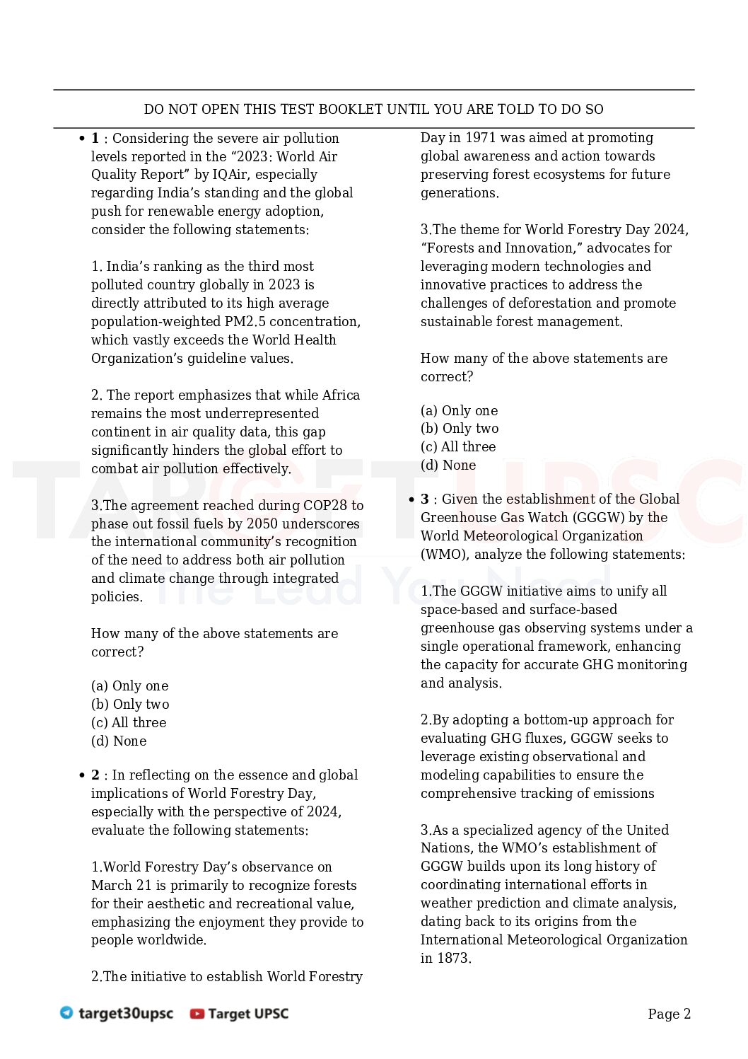 TARGET UPSC 2024 250 ENVIRONMENT MCQ 2024 FINAL {ENGLISH} {BLACK AND WHITE}