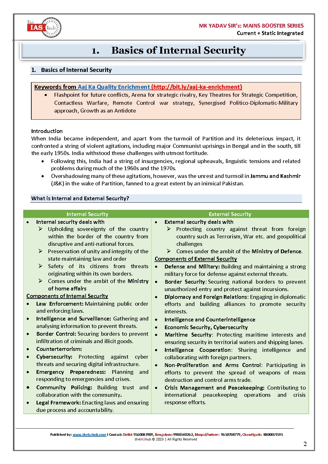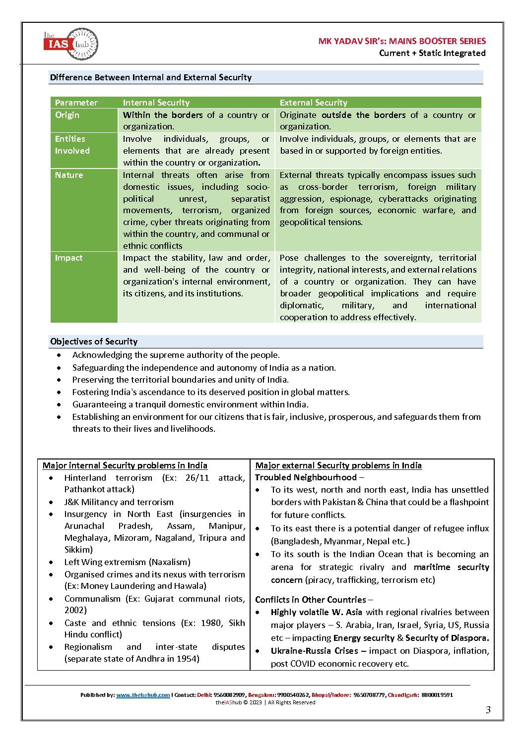 THE IAS HUB MAINS BOOSTER SERIES 2023 INTERNAL SECURITY BY MK YADAV SIR 2023-24 ENGLISH MEDIUM (BLACK & WHITE)