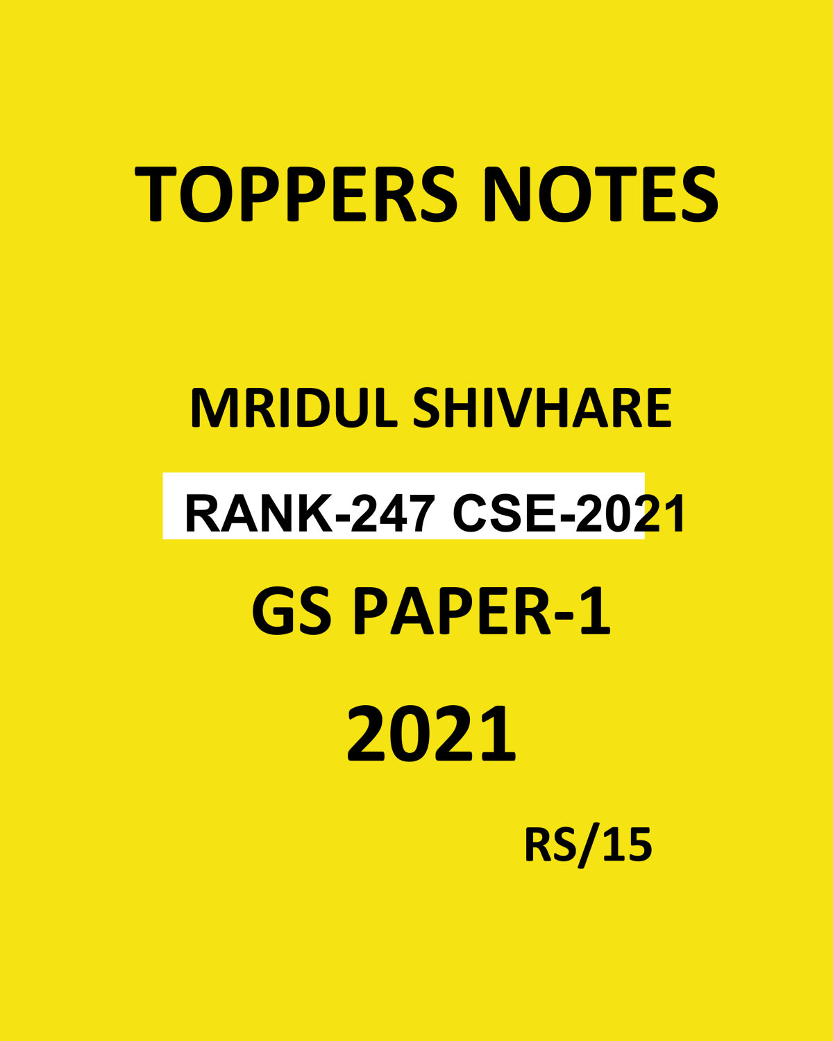 TOPPERS NOTES MRIDUL SHIVHARE RANK 24*7 CSE 2021 GS PAPER-1 NOTES 2021 HNADWRITTEN NOTES (BLACK & WHITE)