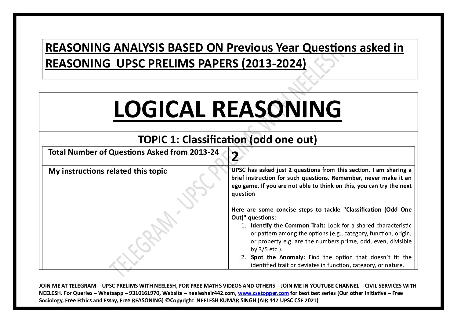TOPPERS NOTES NEELESH KUMAR SINGH REASONING ANALYSIS PYQ DOCUMENT 2024 FINAL (ENGLISH) {BLACK AND WHITE}