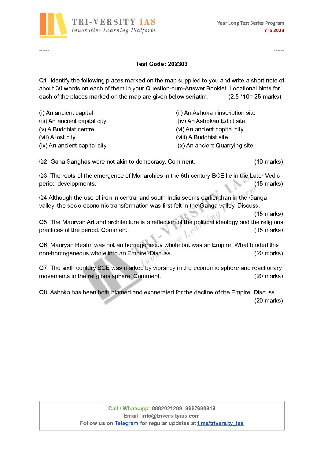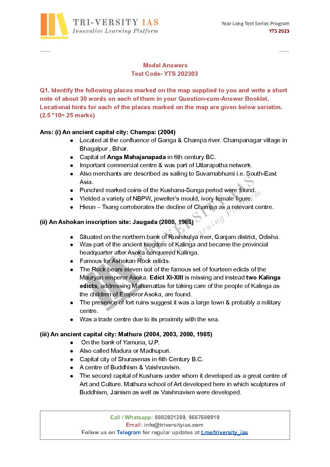 TRI-VERSITY IAS 2023 HISTORY OPTIONAL YEAR LONG TEST SERIES YTS-2023-MODEL ANSWERS TEST CODE-YTS 2023-03 (BLACK & WHITE)