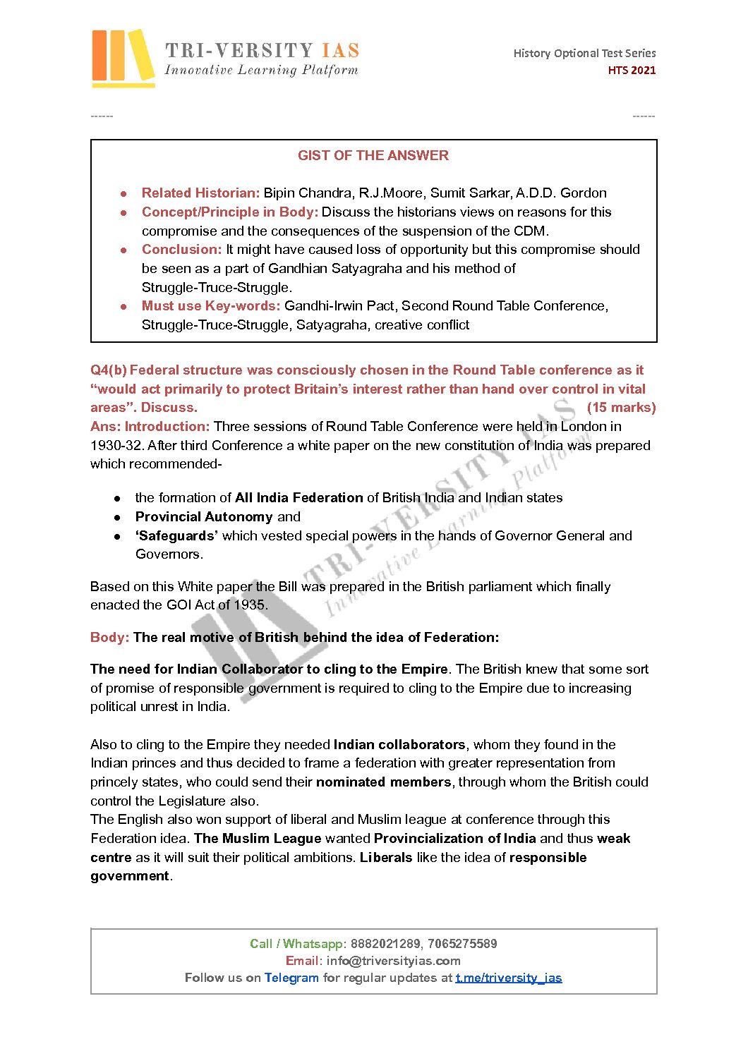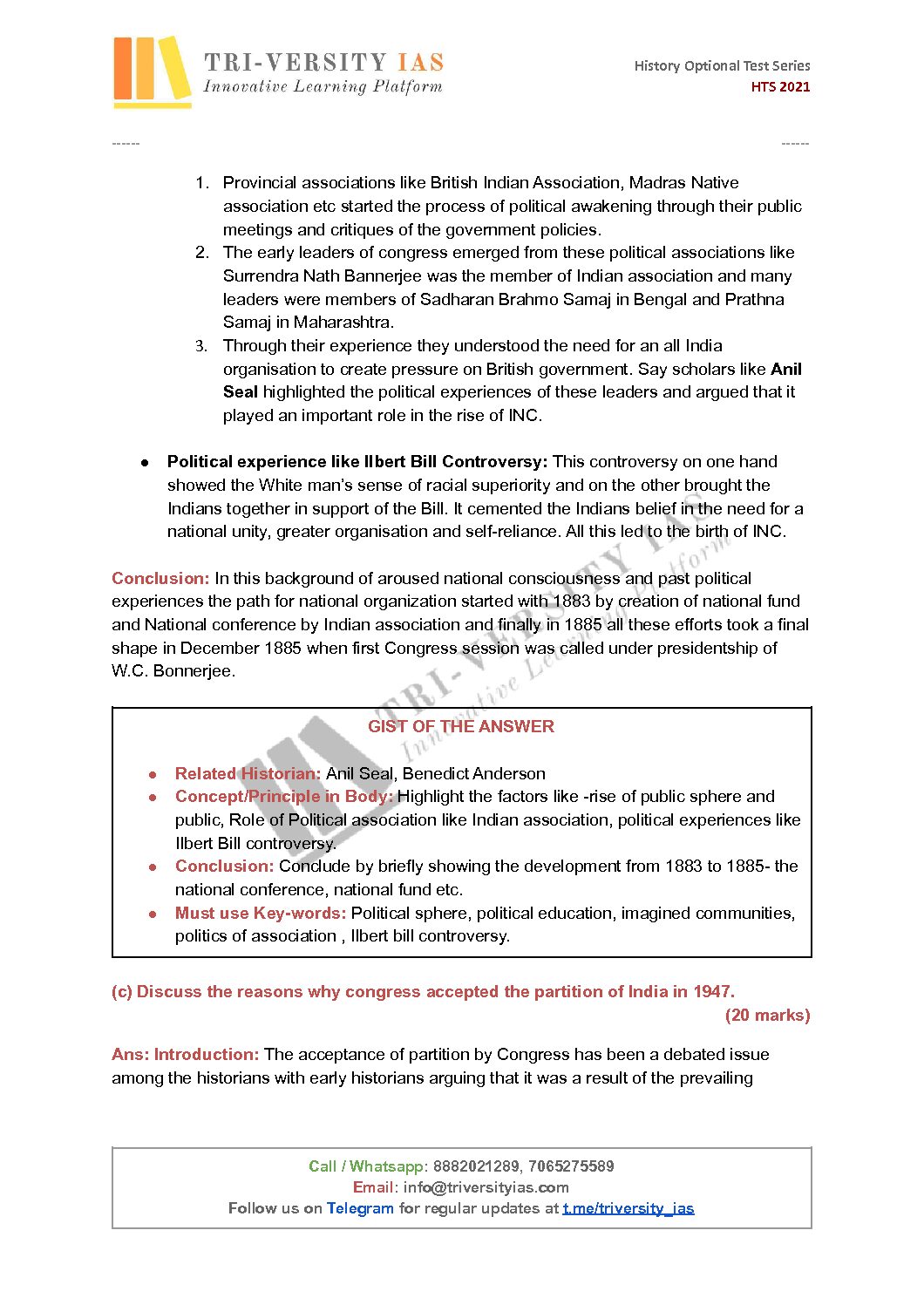 TRI-VERSITY IAS HISTORY OPTIONAL TEST CODE- HTS- 2021-06- HISTORY OPTIONAL TEST SERIES-2021 TOPIC- MODERN INDIA (MODEL ANSWERS )(BLACK & WHITE)