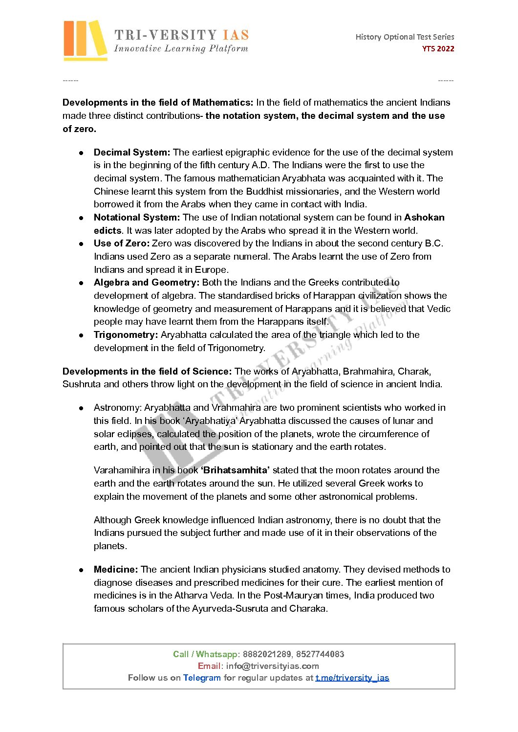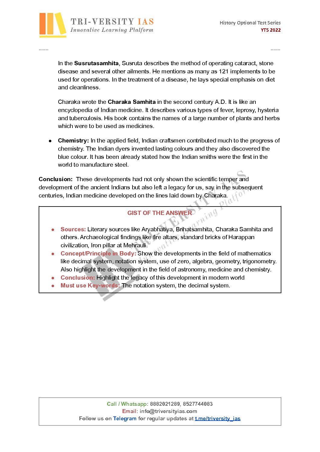 TRI-VERSITY IAS HISTORY OPTIONAL TEST CODE- YTS- 2022-05- YEAR LONG TEST SERIES MODEL PAPER (BLACK & WHITE)