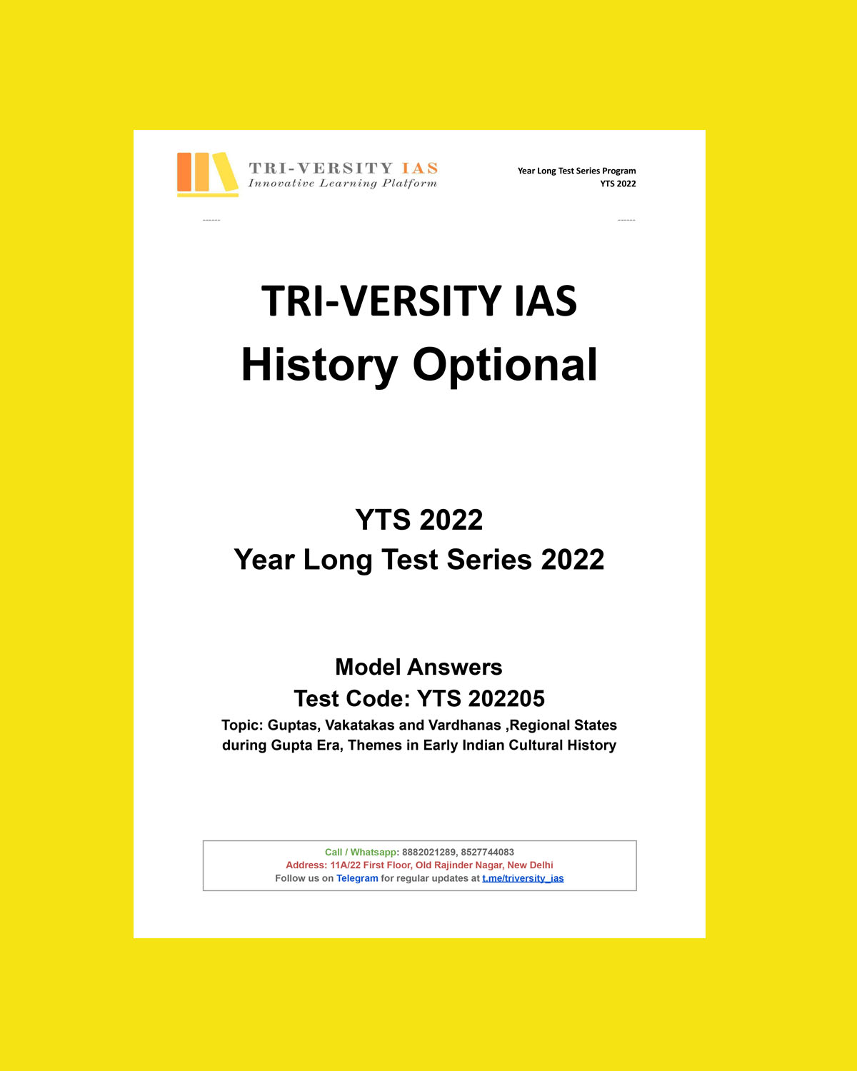 / TRI-VERSITY IAS HISTORY OPTIONAL TEST CODE- YTS- 2022-05- YEAR LONG TEST SERIES MODEL PAPER (BLACK & WHITE)