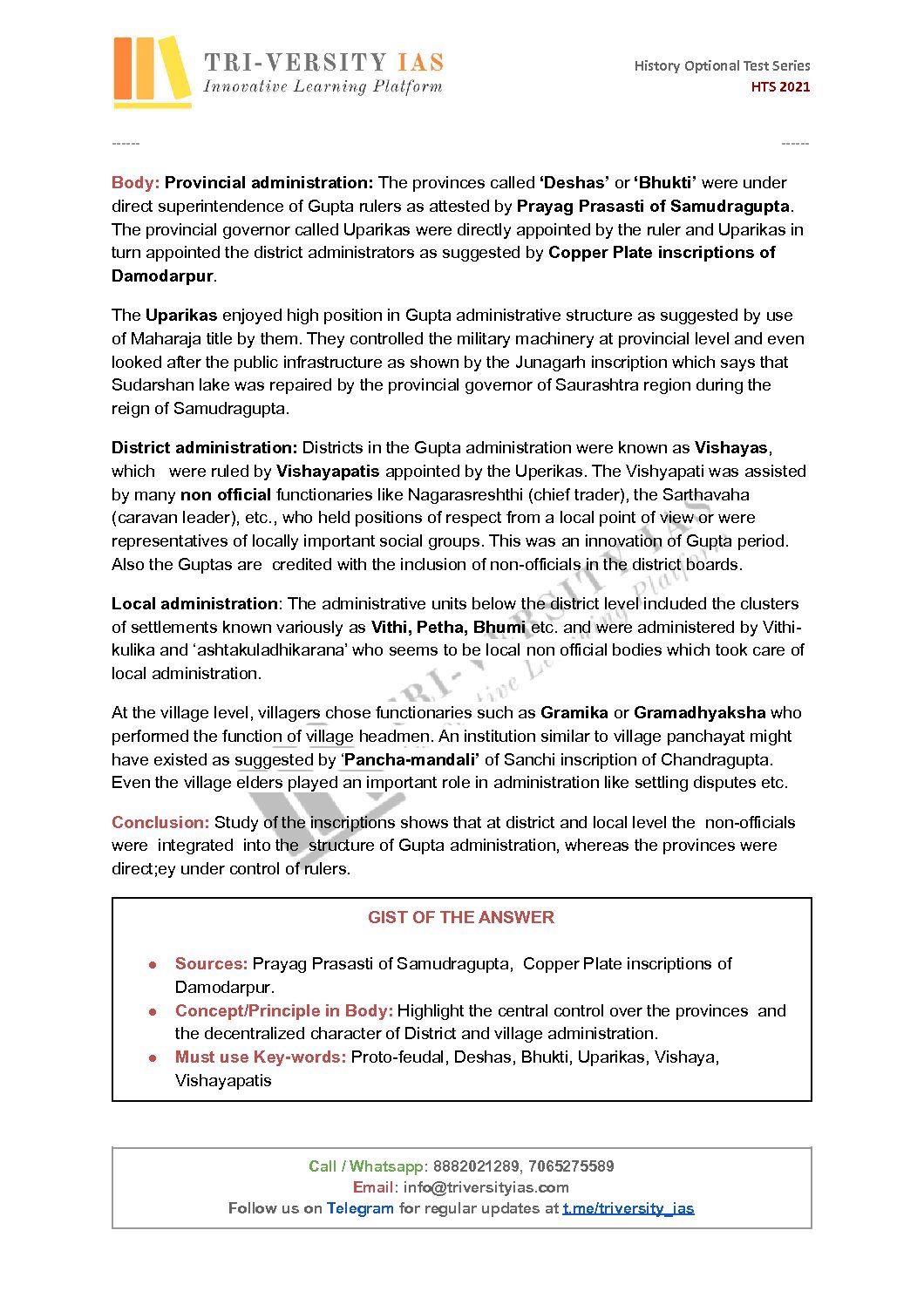 TRI-VERSITY IAS HISTORY OPTIONAL TEST SERIES HTS-2021-MODEL ANSWERS TOPIC- ANCIENT INDIA