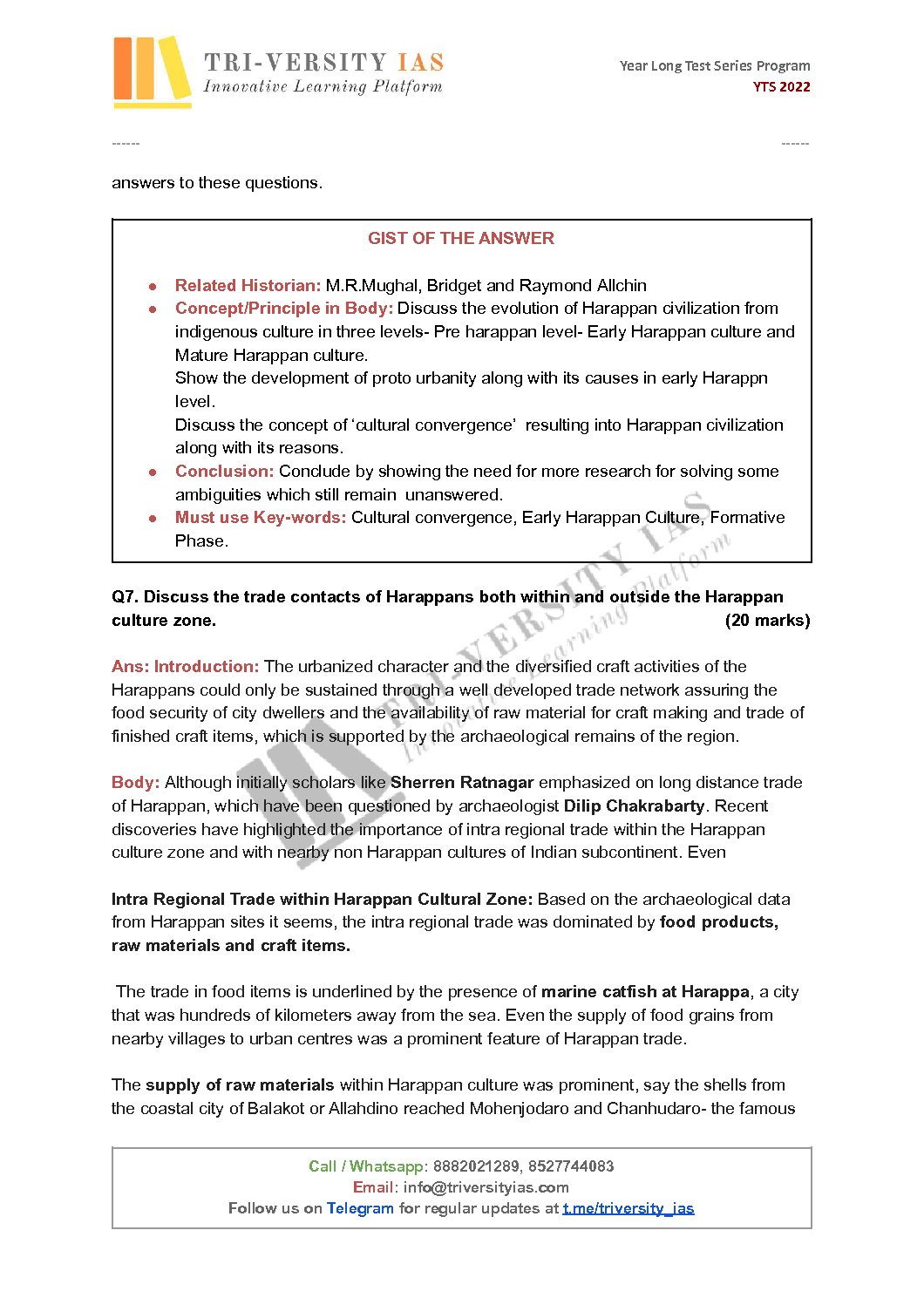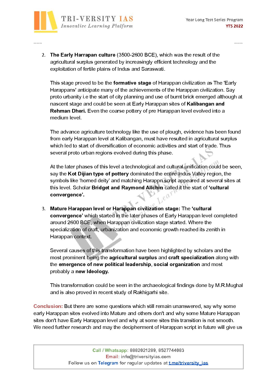 TRI-VERSITY IAS HISTORY OPTIONAL YEAR LONG TEST SERIES YTS-2022-MODEL ANSWERS TOPIC- IVC, MEGALITHICS AND ARYANS AND VEDIC PERIOD