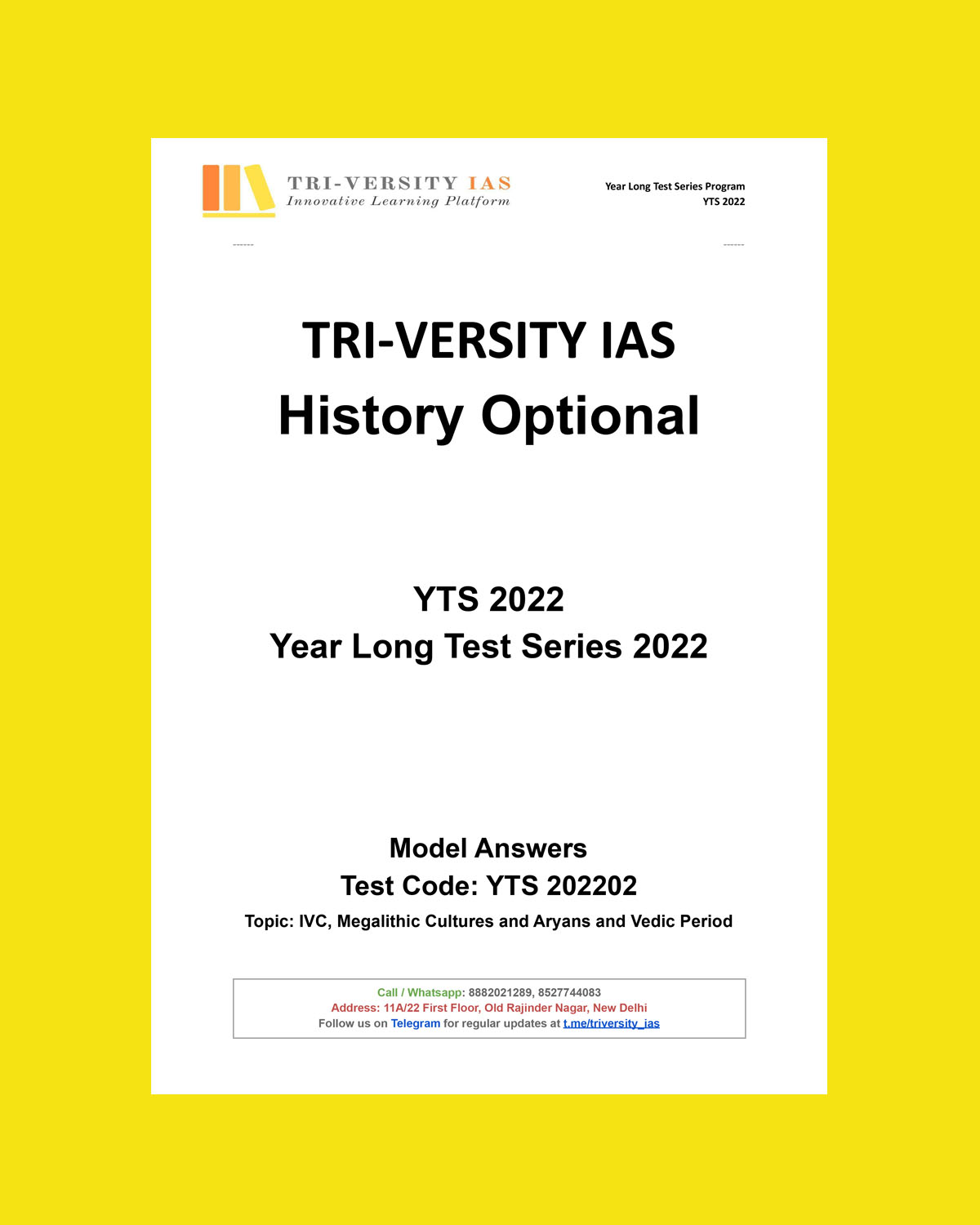 TRI-VERSITY IAS HISTORY OPTIONAL YEAR LONG TEST SERIES YTS-2022-MODEL ANSWERS TOPIC- IVC, MEGALITHICS AND ARYANS AND VEDIC PERIOD quantity