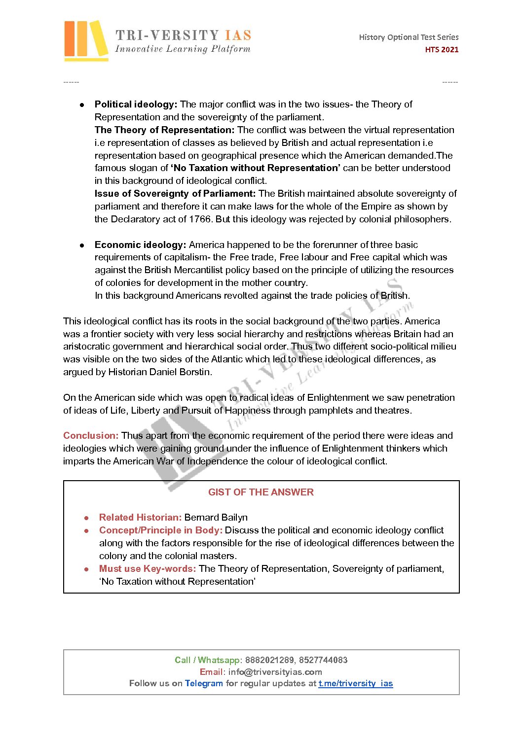 TRI-VERSITY IAS HTS-2021-MODEL ANSWERS –TOPIC WORLD HISTORY(TEST-CODE HTS 2021-07)(BLACK & WHITE)