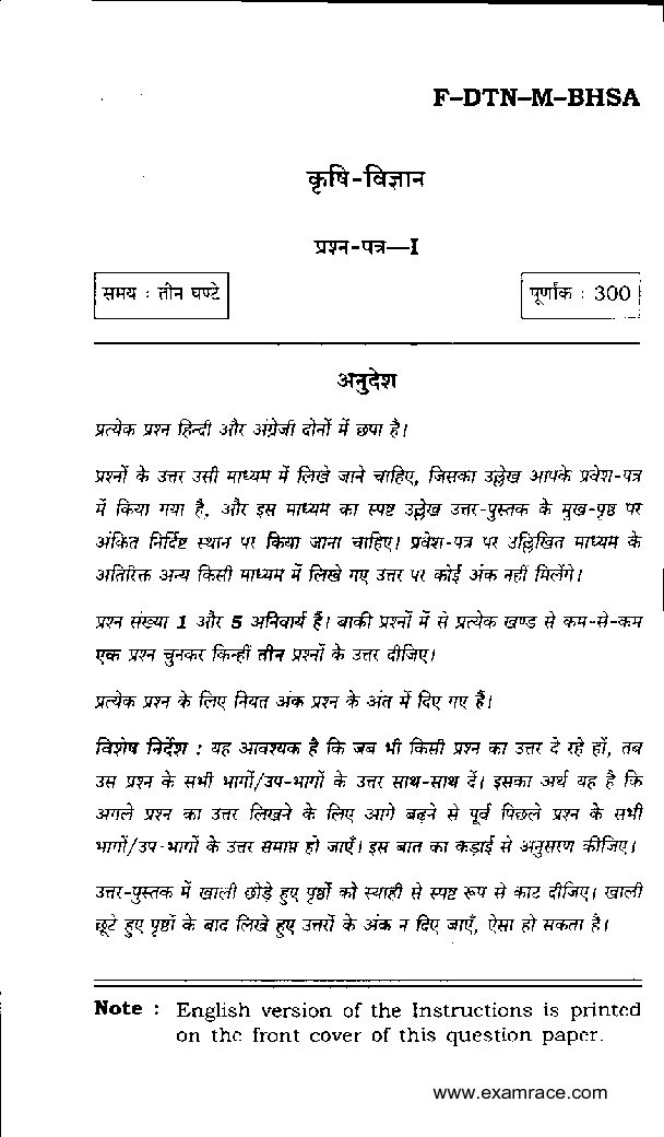 UPSC AGRICULTURE MAINS OPTIONAL 2010 – 2020